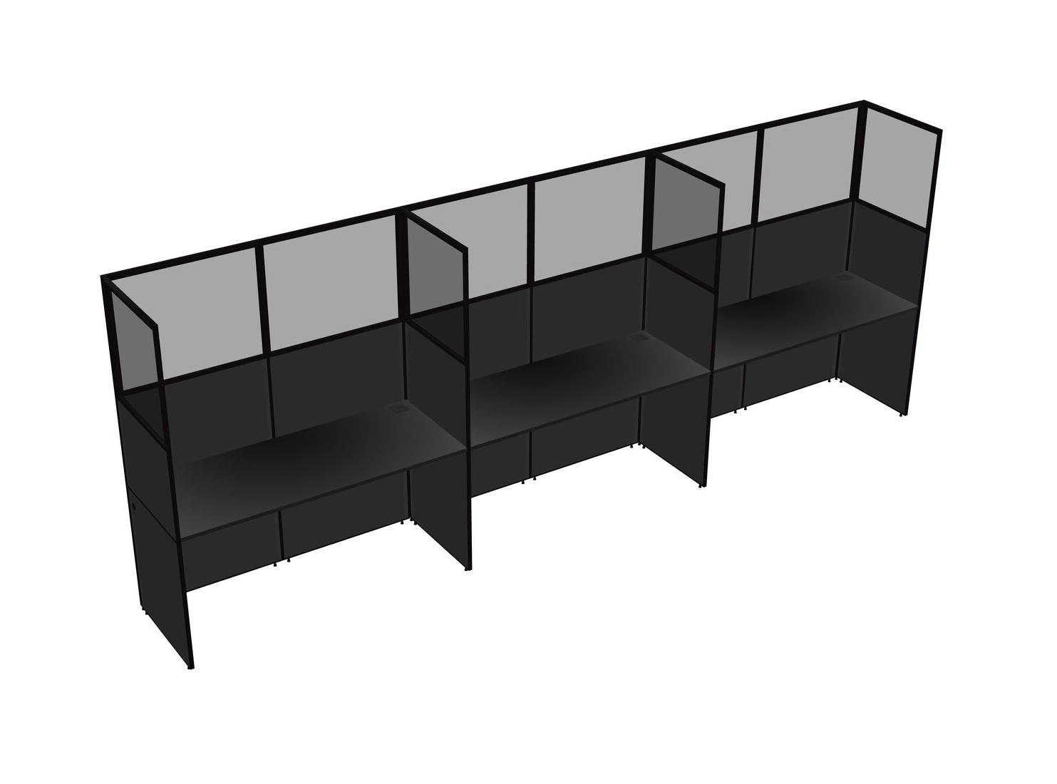 Black Shared Rectangular Office Cubicle Panel System For 3 Persons
