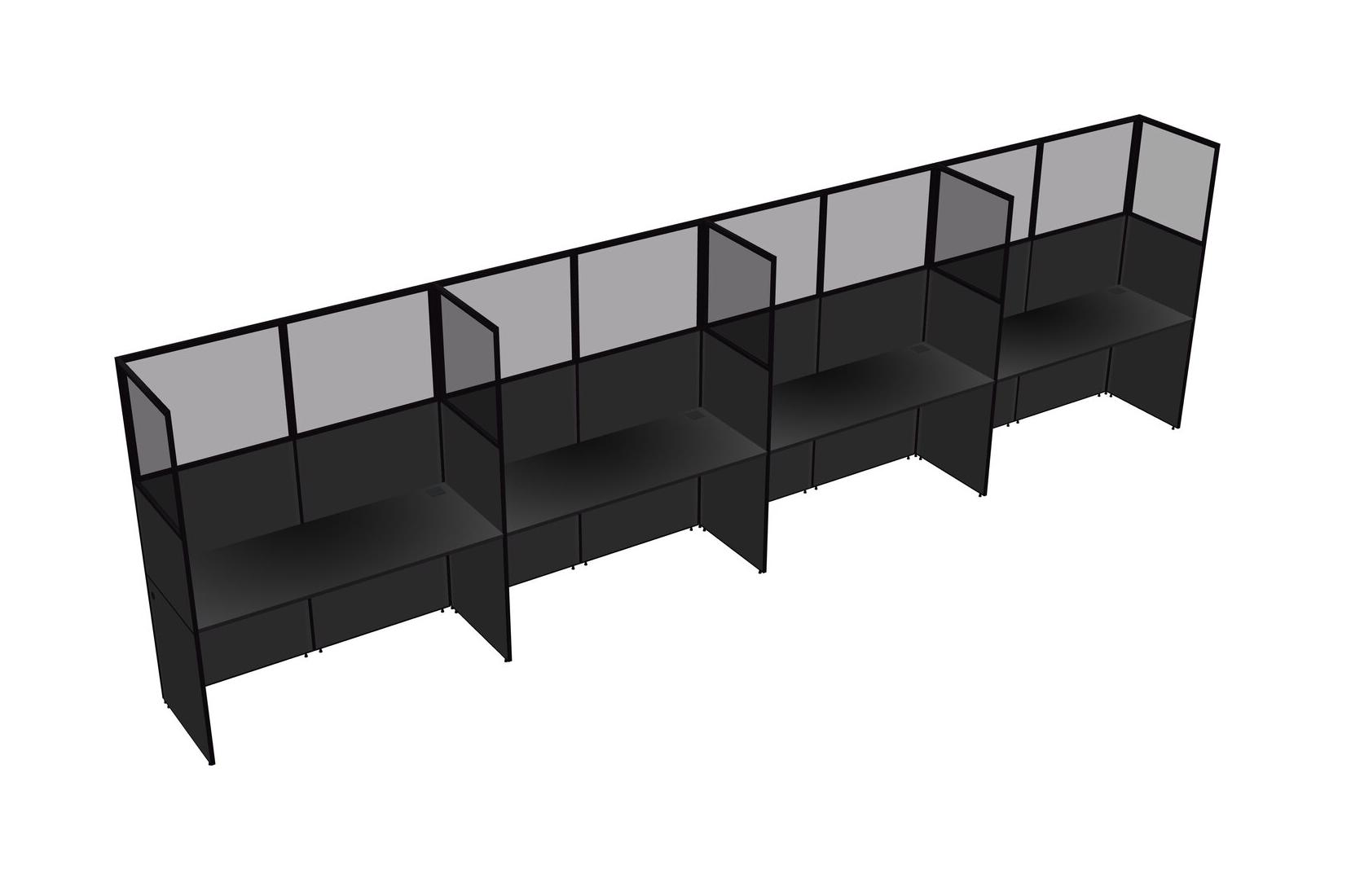 Black Shared Rectangular Office Cubicle Panel System For 4 Persons