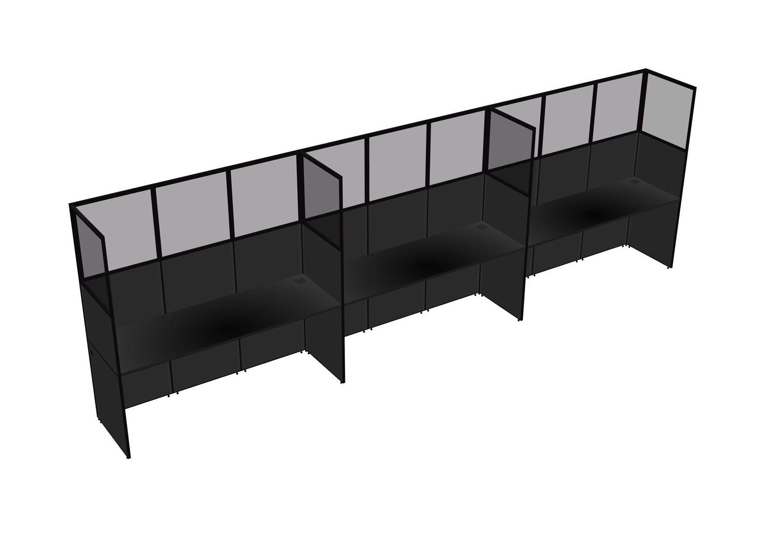 Black Shared Rectangular Office Cubicle Panel System For 3 Persons