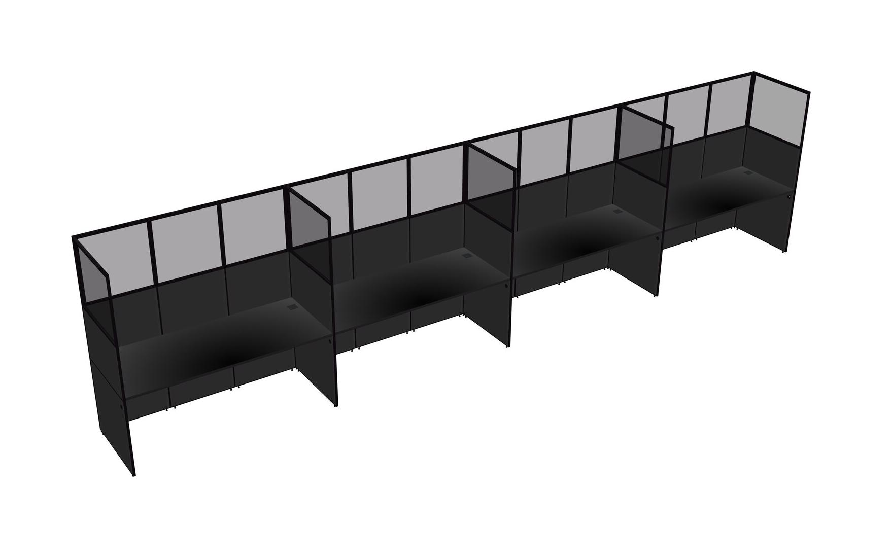Black Shared Rectangular Office Cubicle Panel System For 4 Persons