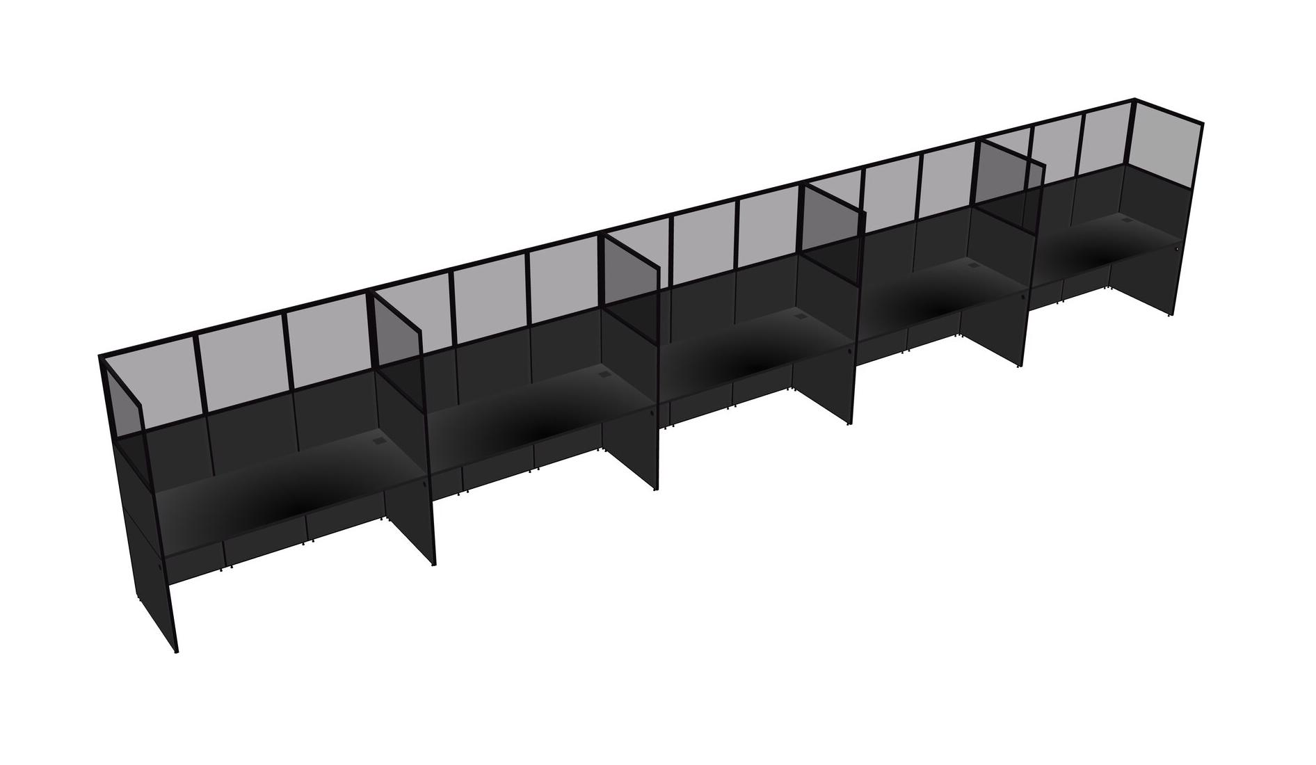 Black Shared Rectangular Office Cubicle Panel System For 5 Persons