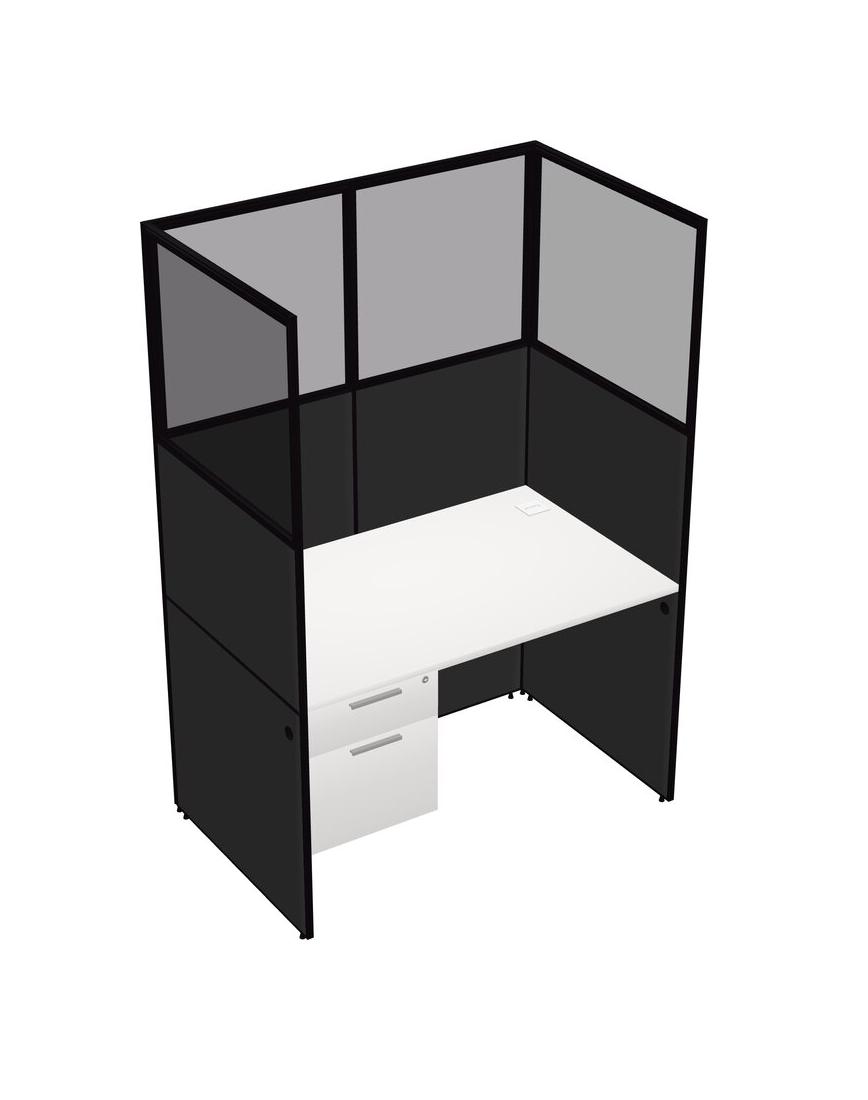 White Shared Rectangular Office Cubicle Panel System With Hanging Drawers For 1 Persons
