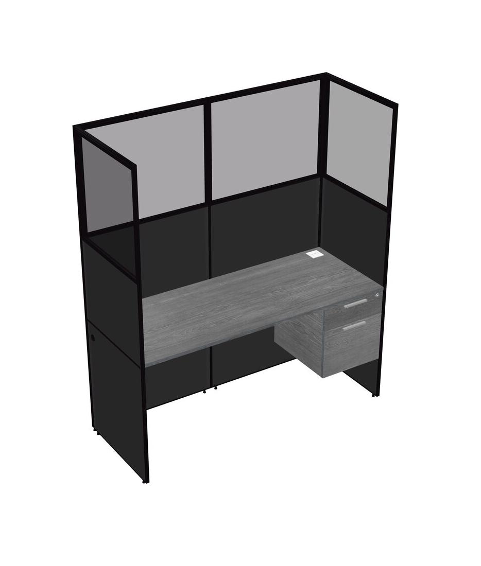 Grey Shared Rectangular Office Cubicle Panel System With Hanging Drawers For 1 Persons