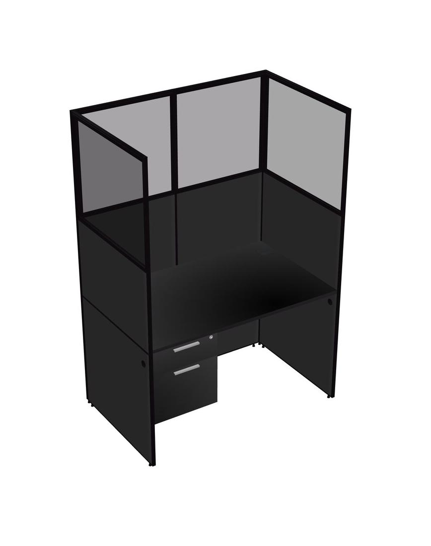 Black Shared Rectangular Office Cubicle Panel System With Hanging Drawers For 1 Persons