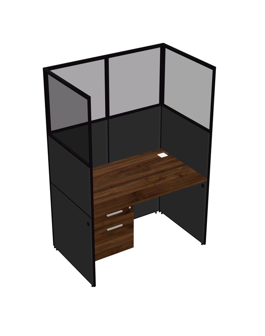 Columbia Walnut Shared Rectangular Office Cubicle Panel System With Hanging Drawers For 1 Persons
