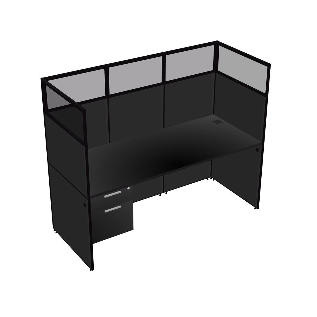 Black Shared Rectangular Office Cubicle Panel System With Hanging Drawers For 1 Persons