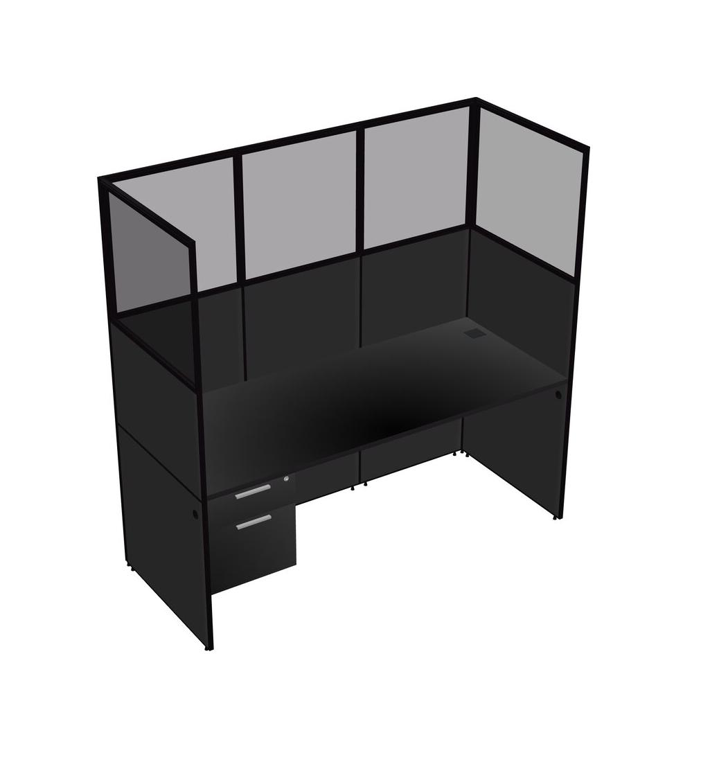 Black Shared Rectangular Office Cubicle Panel System With Hanging Drawers For 1 Persons