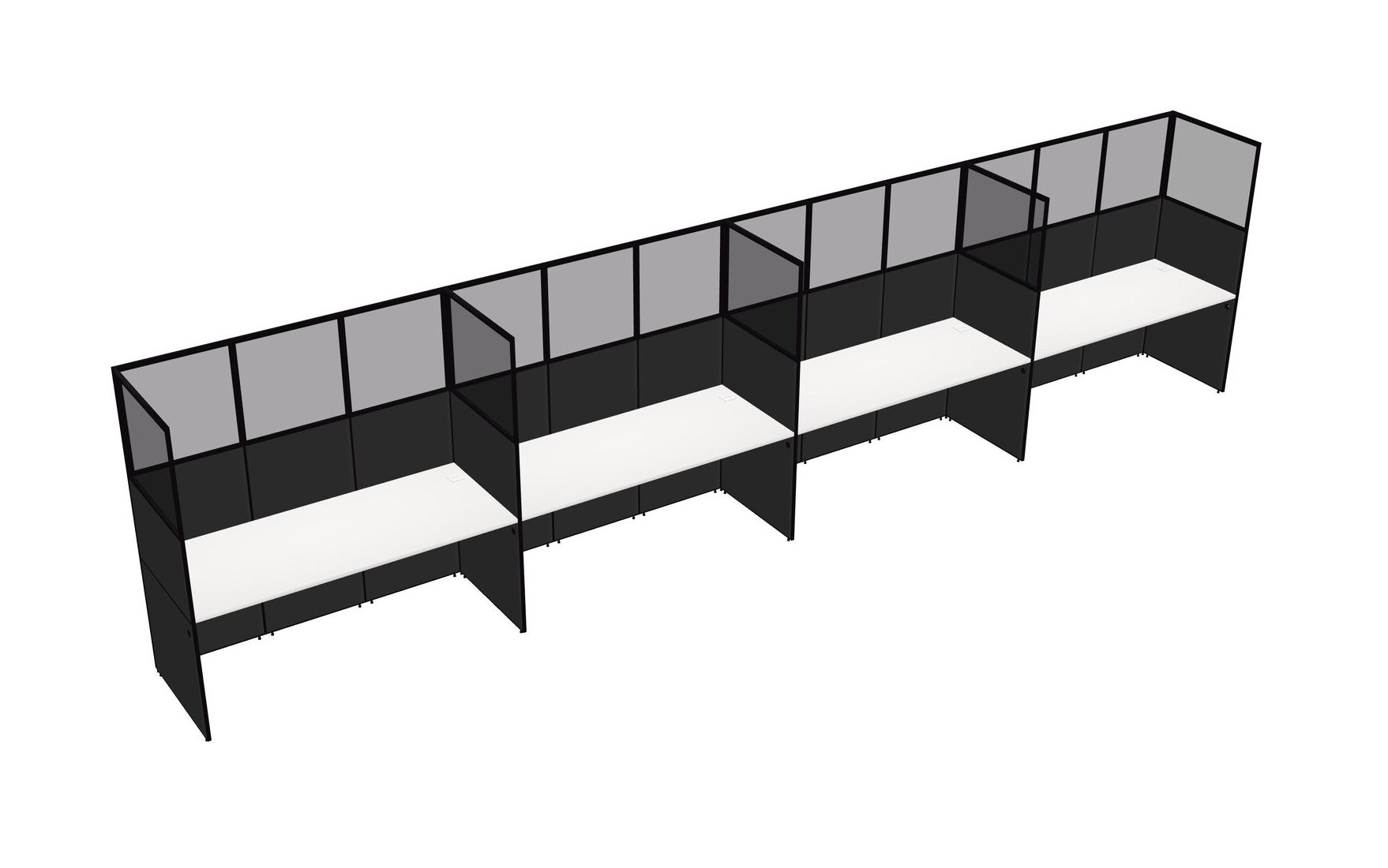 White Shared Rectangular Office Cubicle Panel System For 4 Persons