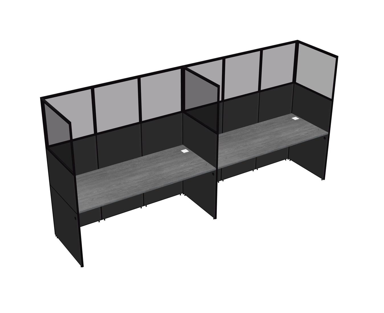 Grey Shared Rectangular Office Cubicle Panel System For 2 Persons