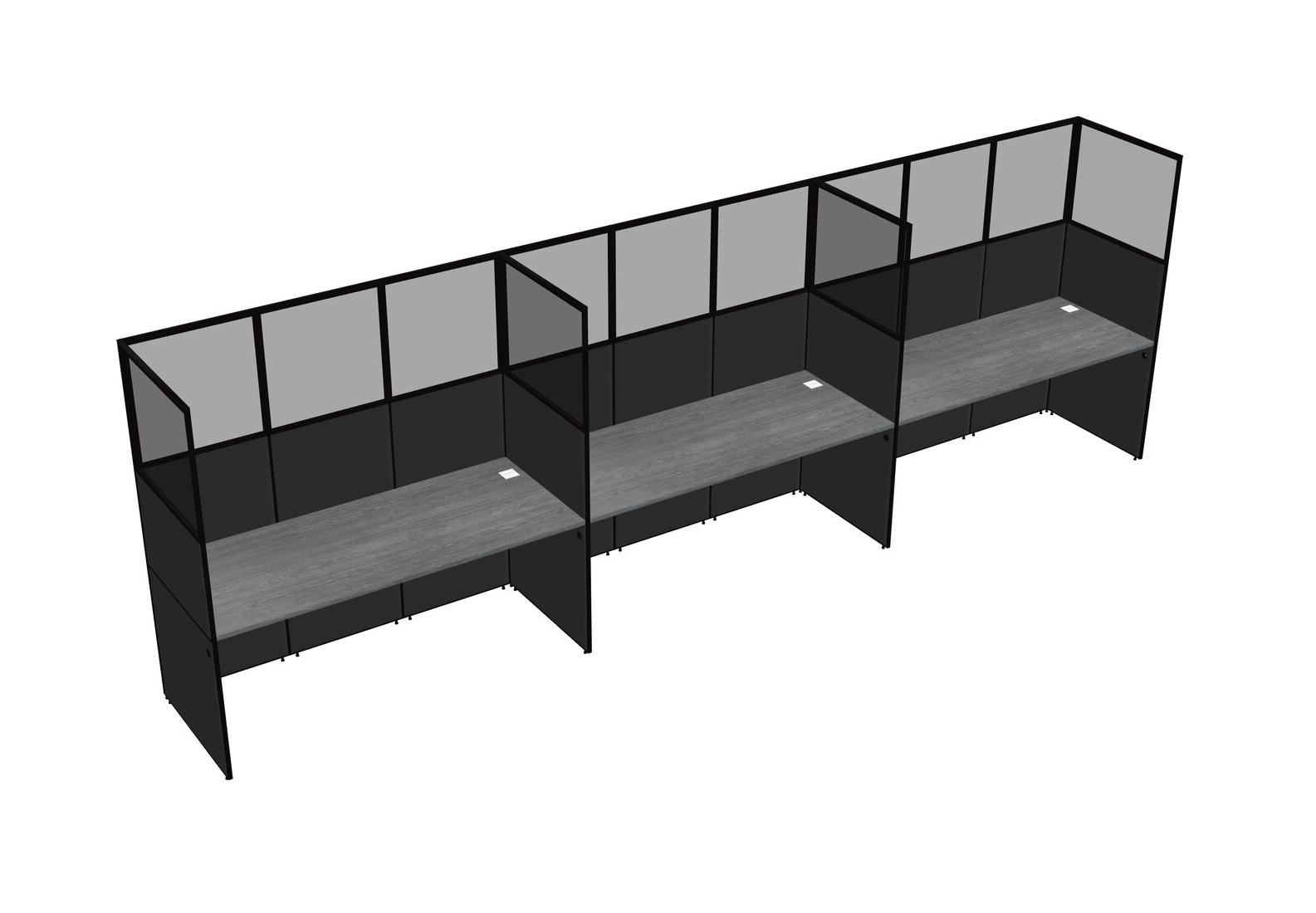Grey Shared Rectangular Office Cubicle Panel System For 3 Persons