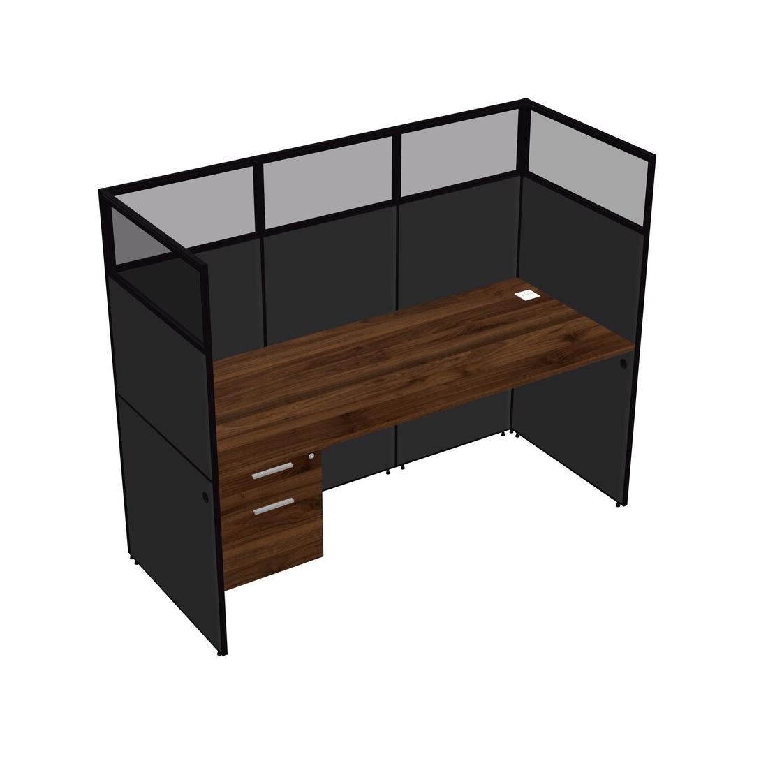 Columbia Walnut Shared Rectangular Office Cubicle Panel System With Hanging Drawers For 1 Persons