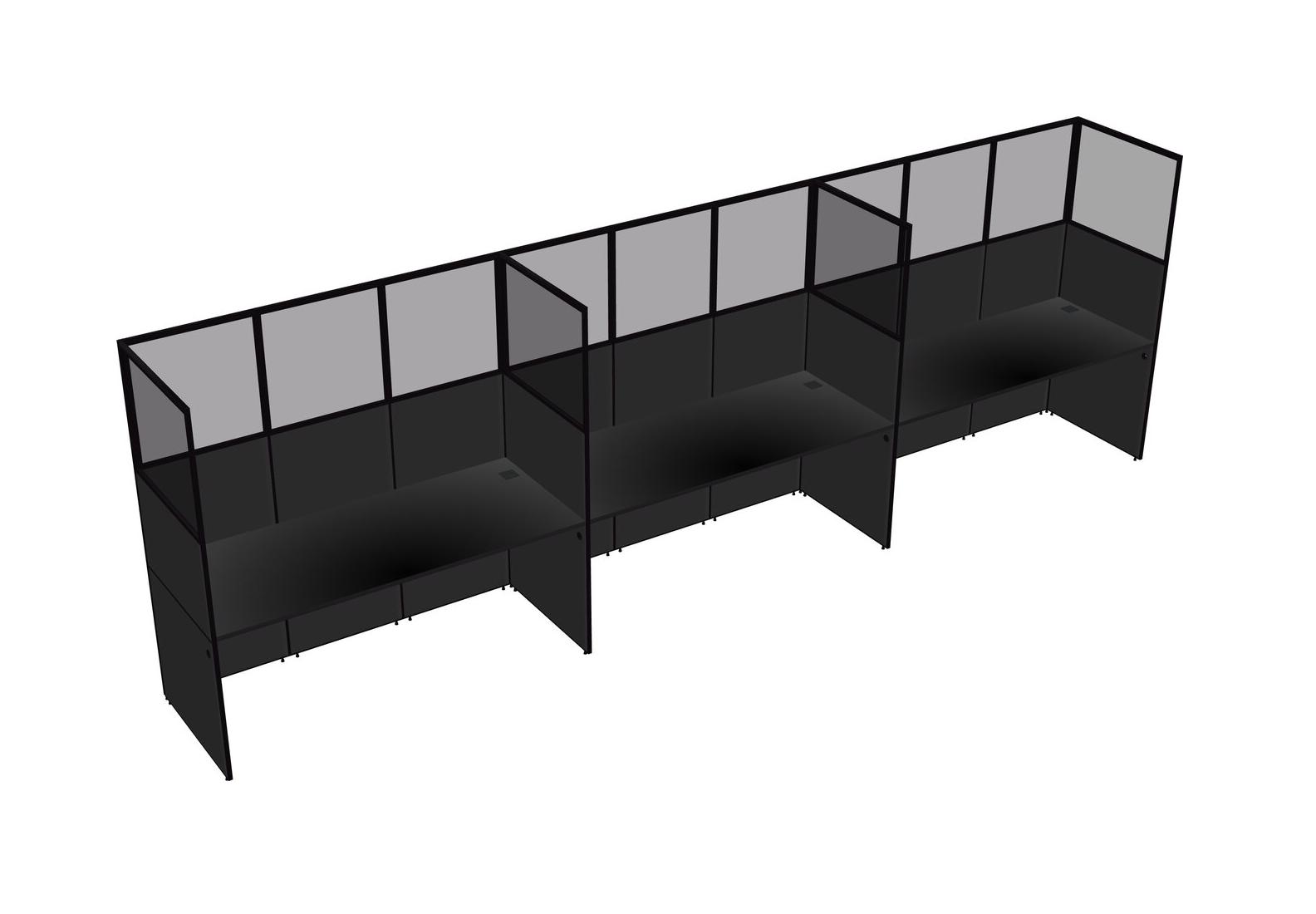 Black Shared Rectangular Office Cubicle Panel System For 3 Persons