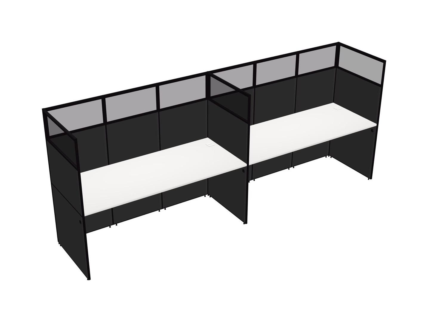 White Shared Rectangular Office Cubicle Panel System For 2 Persons