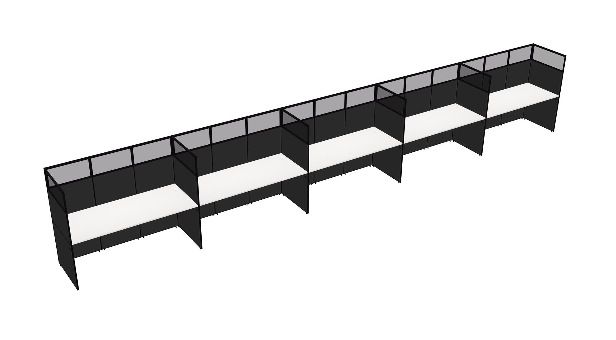 White Shared Rectangular Office Cubicle Panel System For 5 Persons