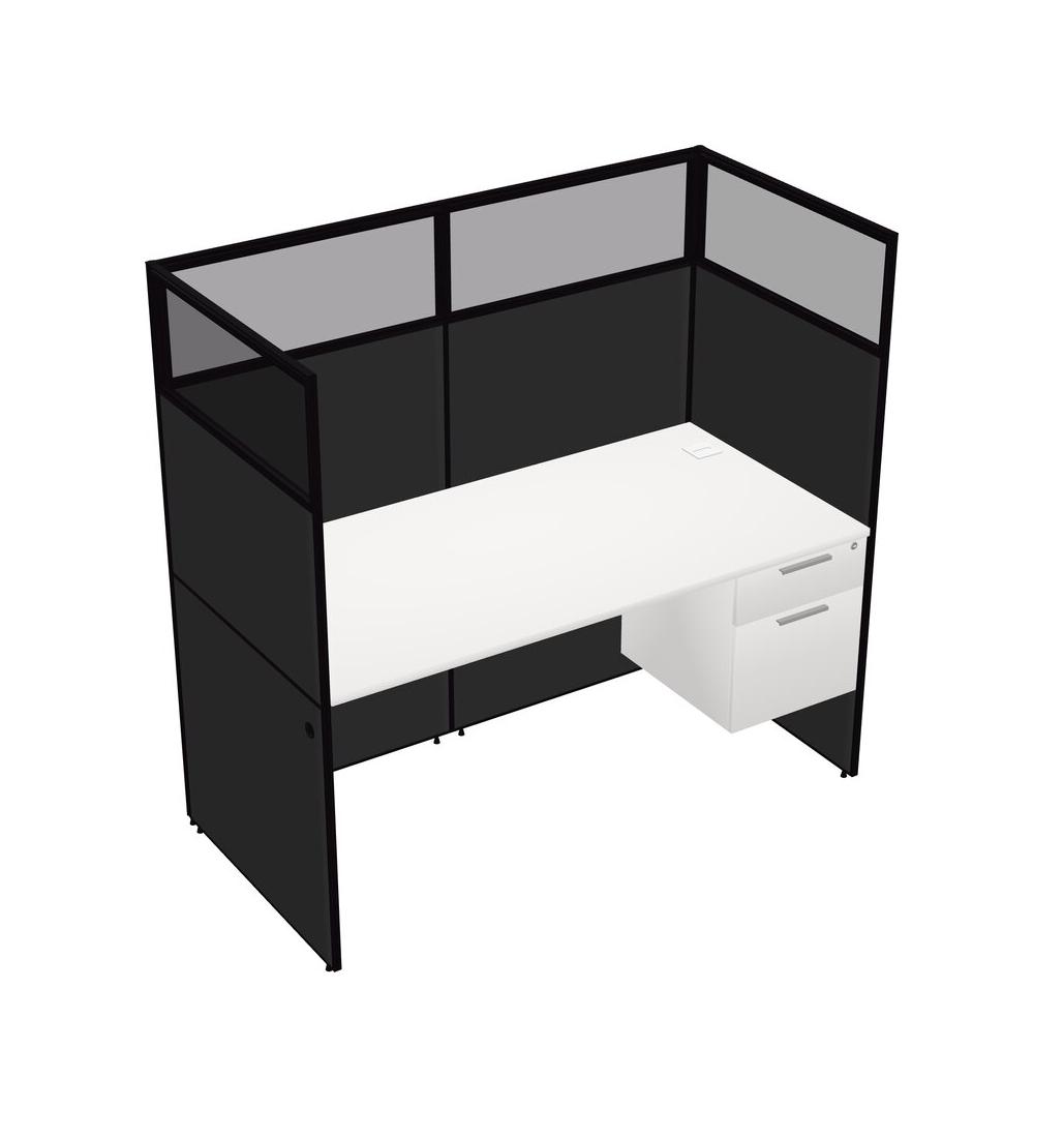 White Shared Rectangular Office Cubicle Panel System With Hanging Drawers For 1 Persons