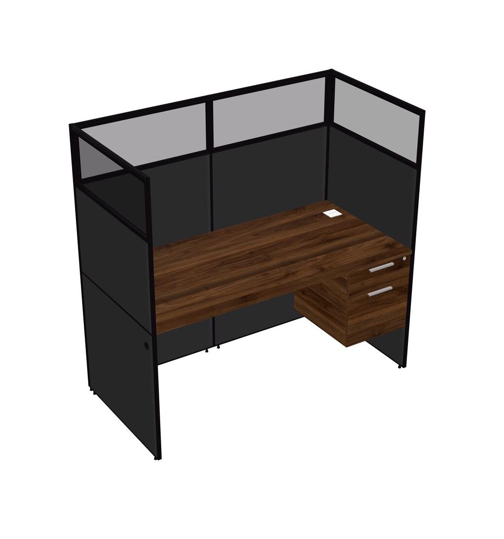 Columbia Walnut Shared Rectangular Office Cubicle Panel System With Hanging Drawers For 1 Persons