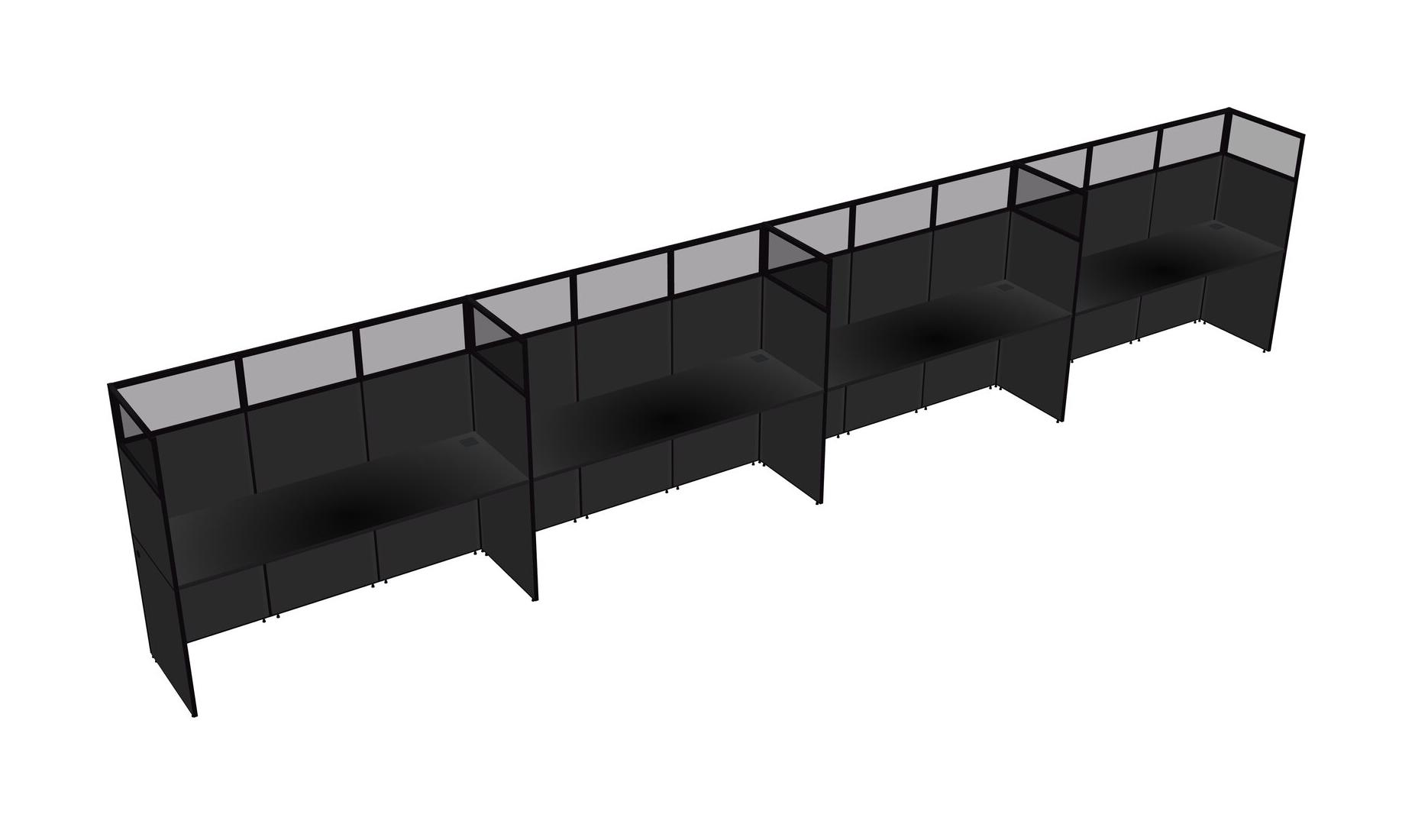 Black Shared Rectangular Office Cubicle Panel System For 4 Persons