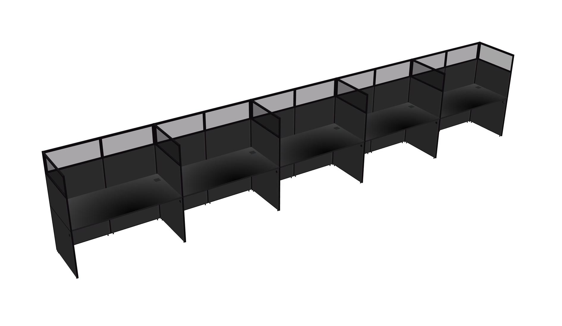 Black Shared Rectangular Office Cubicle Panel System For 5 Persons