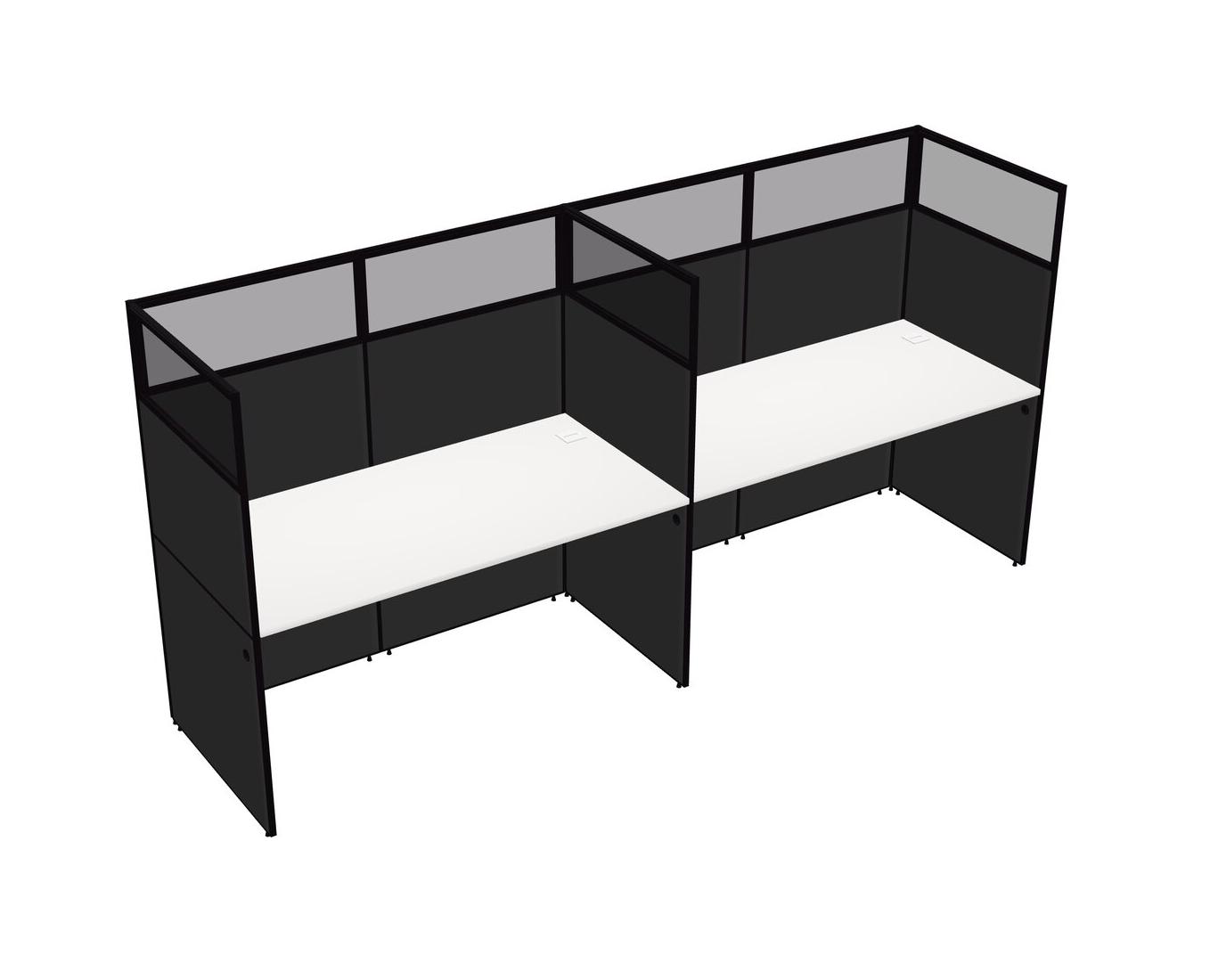 White Shared Rectangular Office Cubicle Panel System For 2 Persons