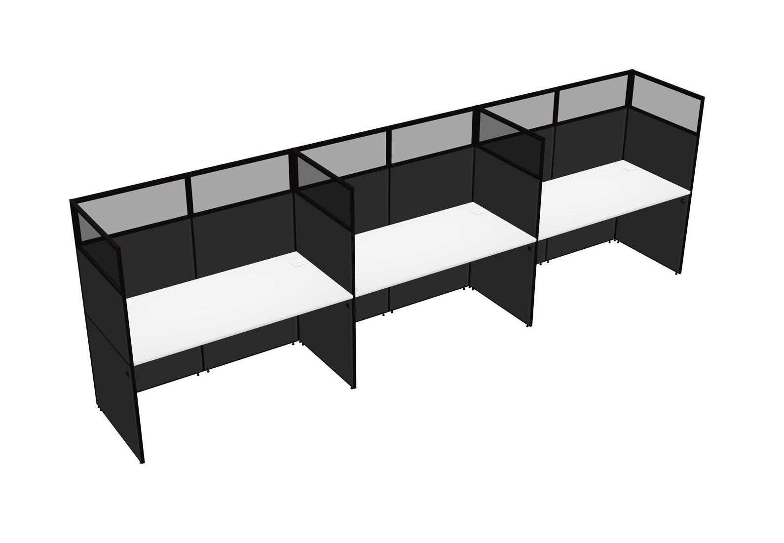 White Shared Rectangular Office Cubicle Panel System For 3 Persons