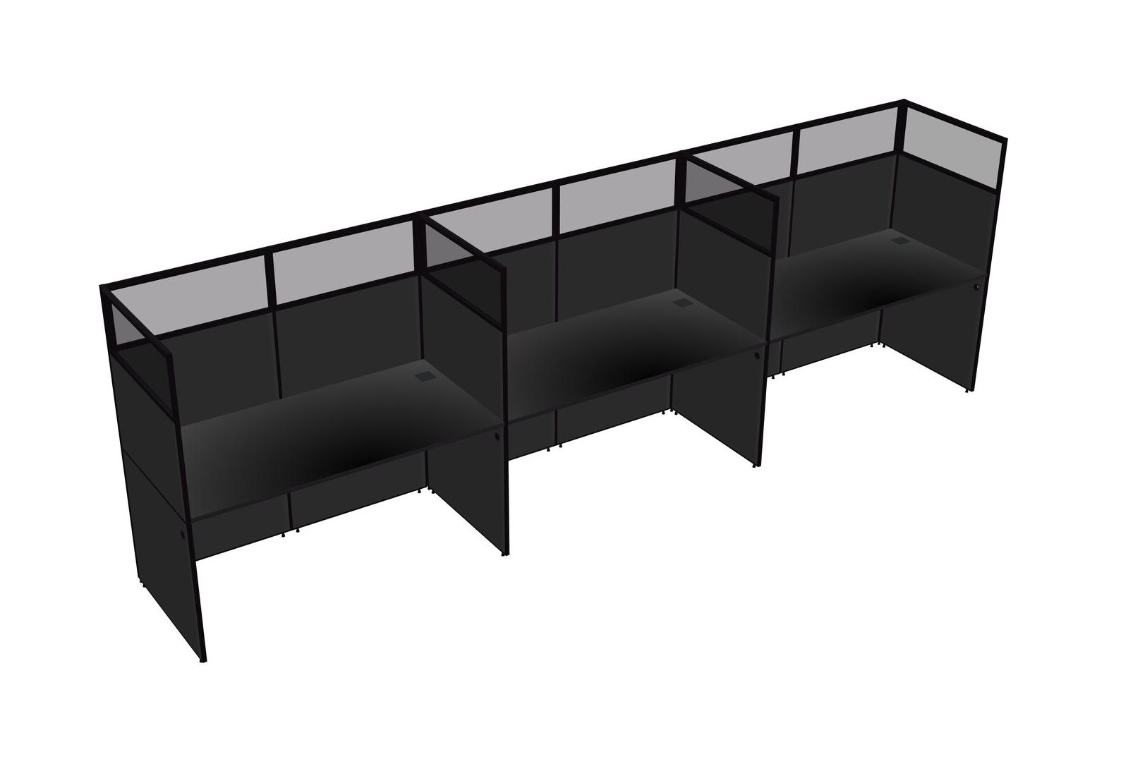 Black Shared Rectangular Office Cubicle Panel System For 3 Persons
