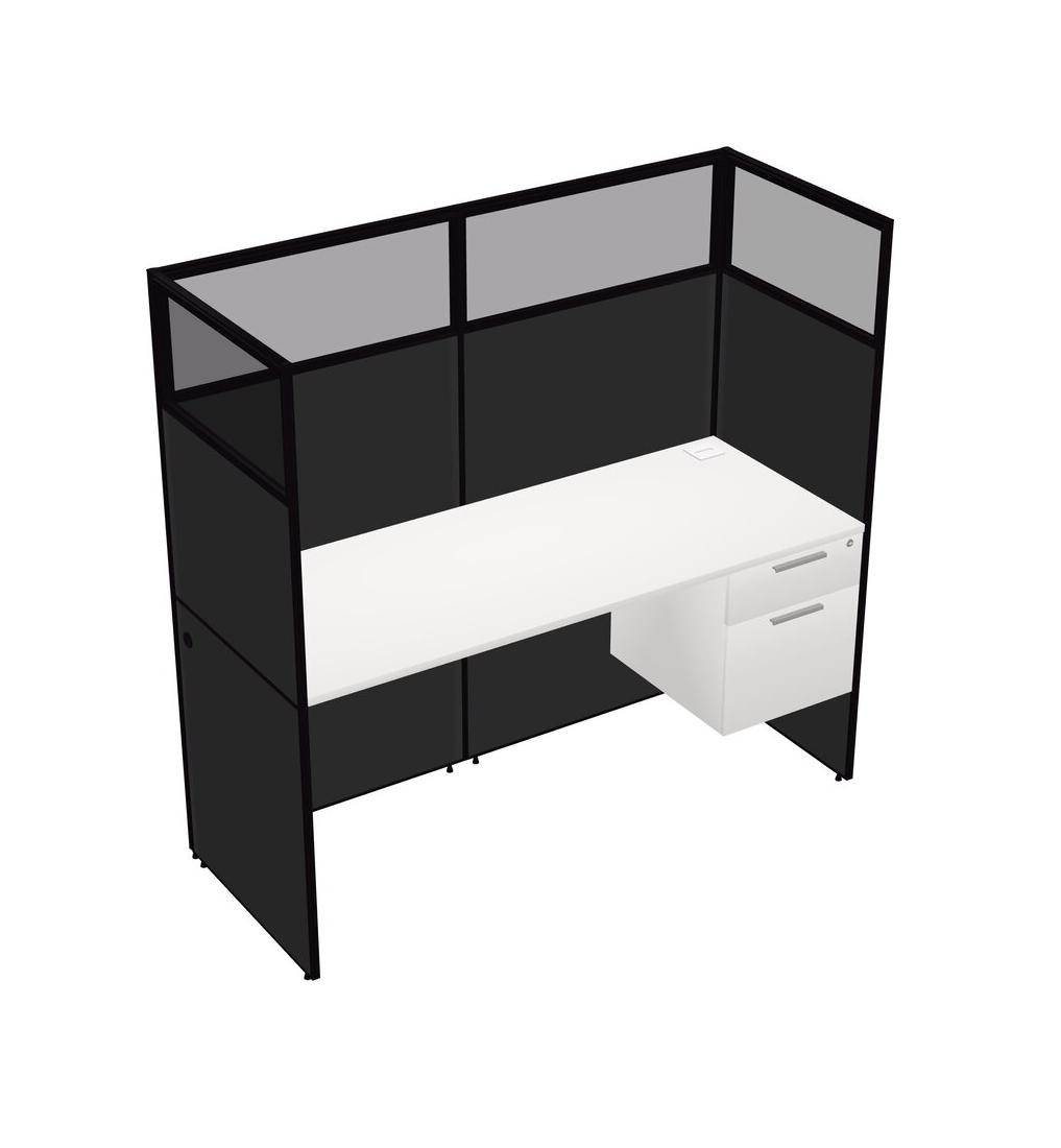 White Shared Rectangular Office Cubicle Panel System With Hanging Drawers For 1 Persons