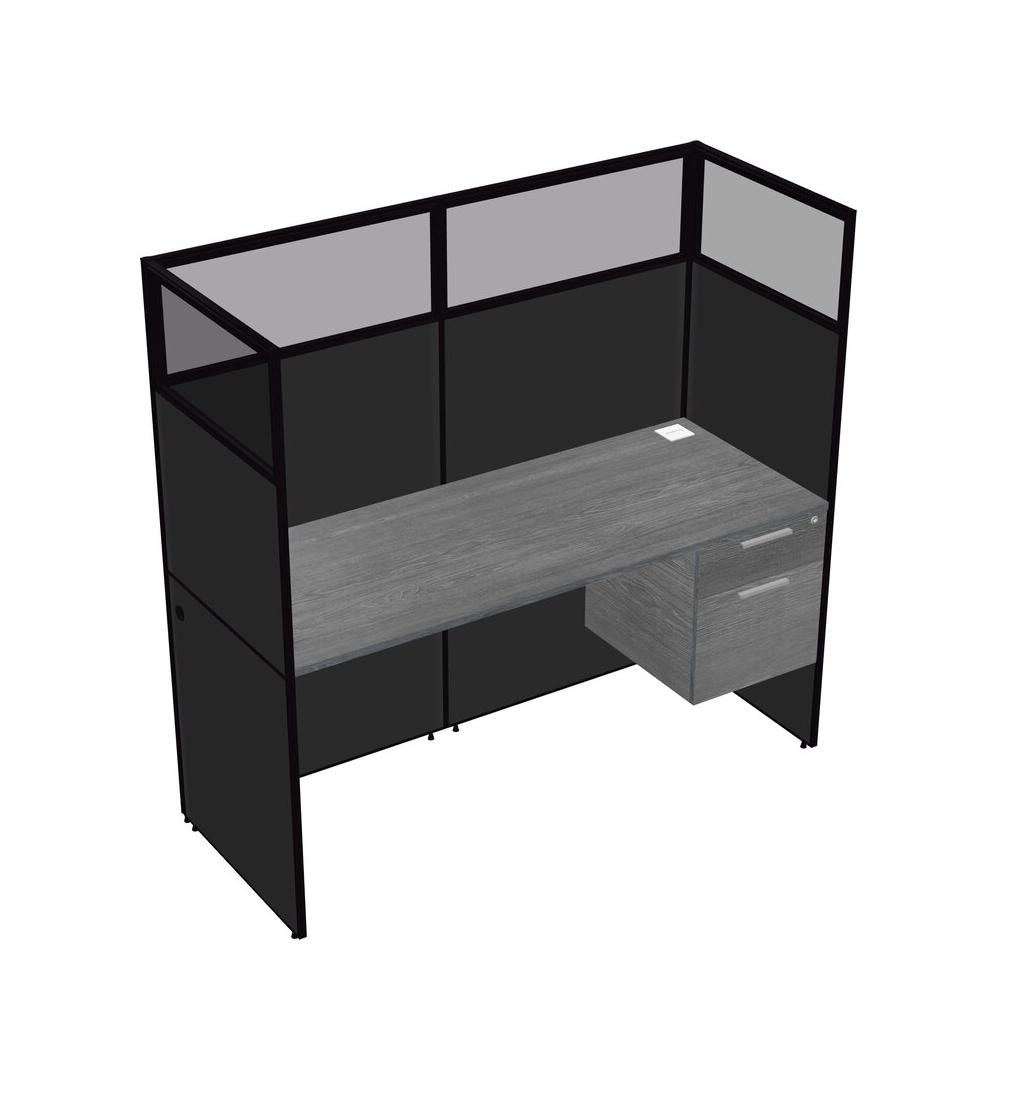 Grey Shared Rectangular Office Cubicle Panel System With Hanging Drawers For 1 Persons