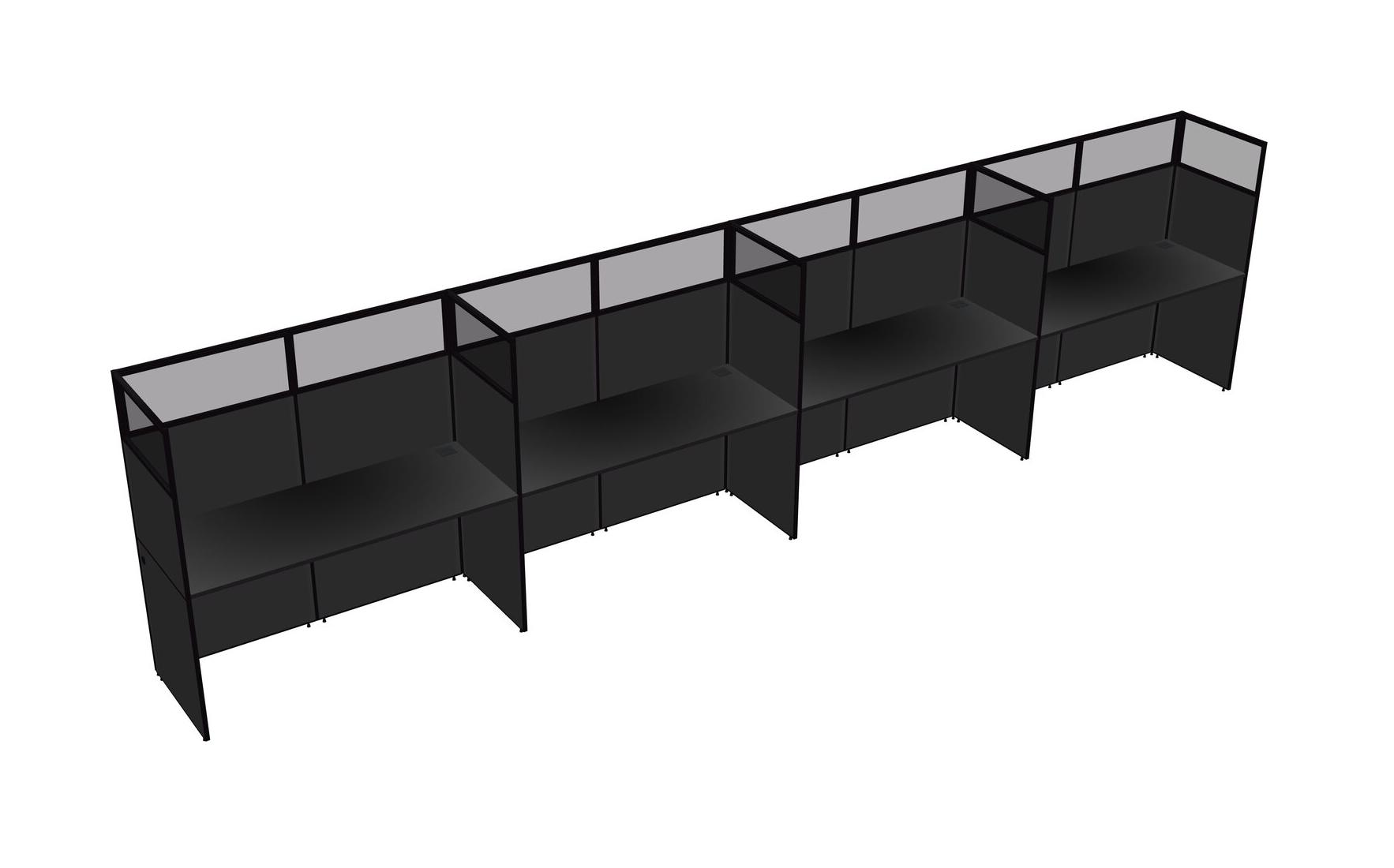 Black Shared Rectangular Office Cubicle Panel System For 4 Persons