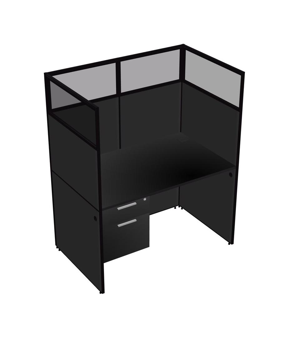 Black Shared Rectangular Office Cubicle Panel System With Hanging Drawers For 1 Persons