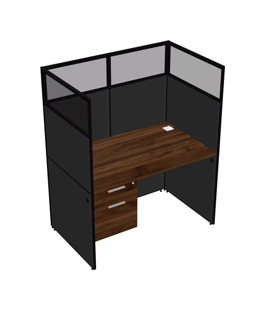 Columbia Walnut Shared Rectangular Office Cubicle Panel System With Hanging Drawers For 1 Persons