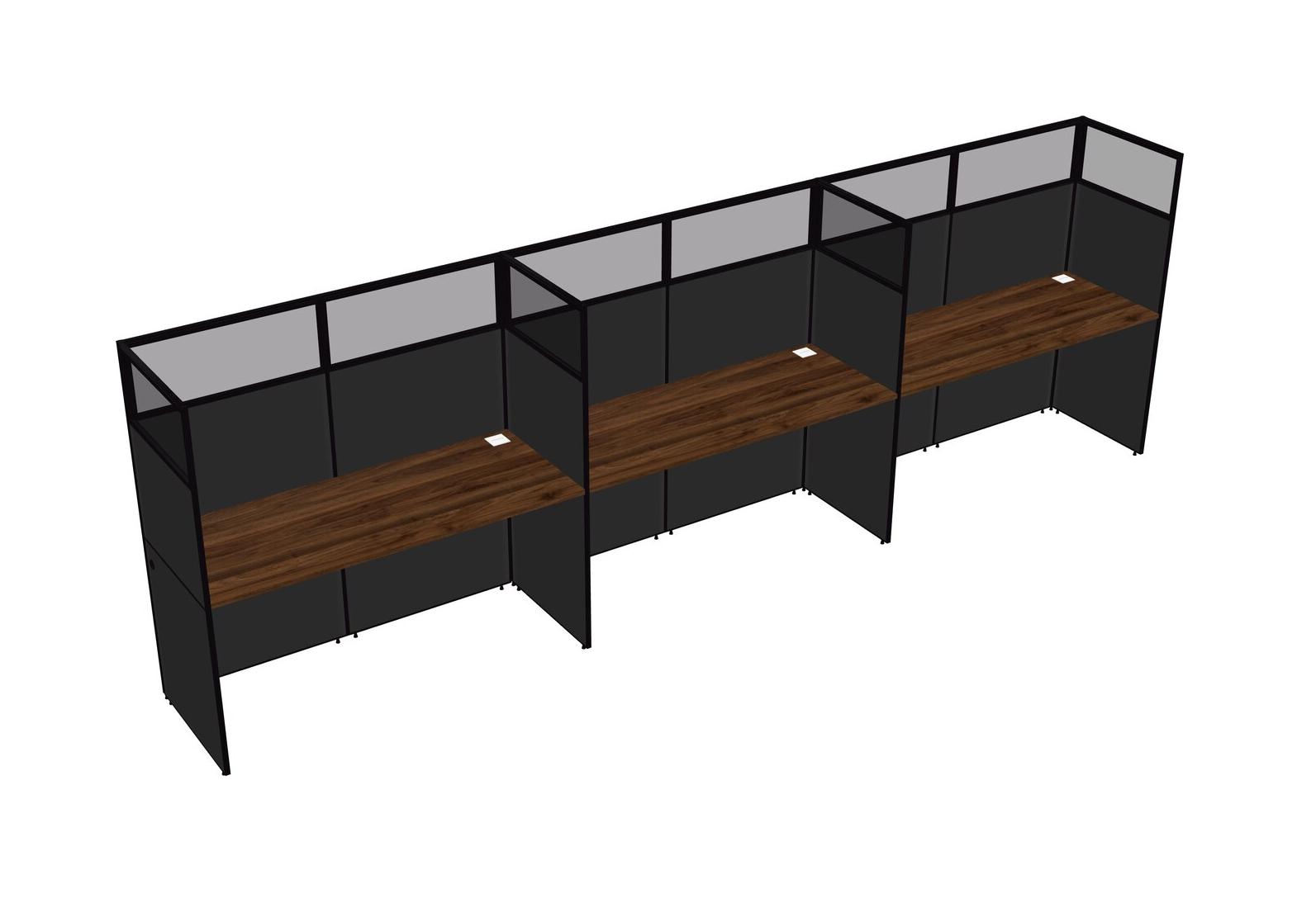 Columbia Walnut Shared Rectangular Office Cubicle Panel System For 3 Persons