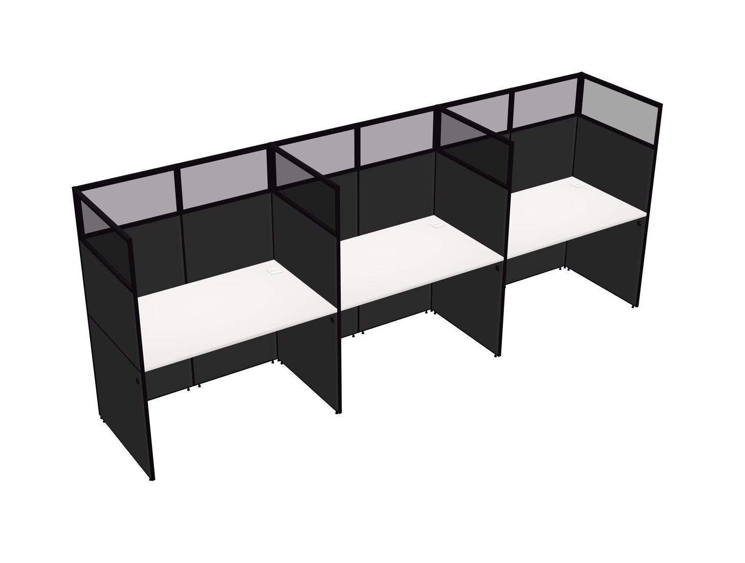 White Shared Rectangular Office Cubicle Panel System For 3 Persons