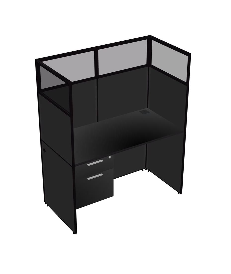 Black Shared Rectangular Office Cubicle Panel System With Hanging Drawers For 1 Persons