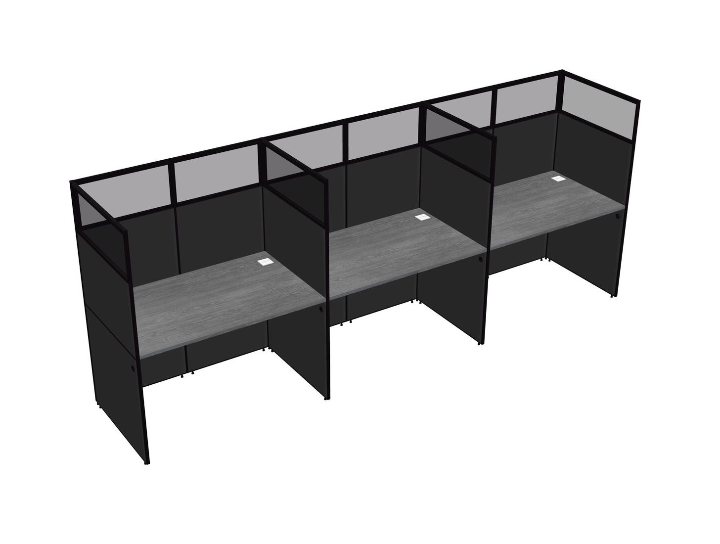 Grey Shared Rectangular Office Cubicle Panel System For 3 Persons