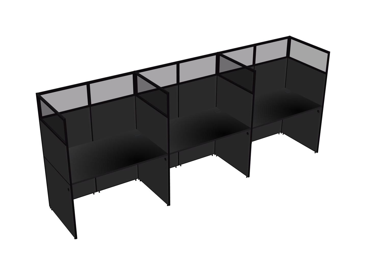 Black Shared Rectangular Office Cubicle Panel System For 3 Persons