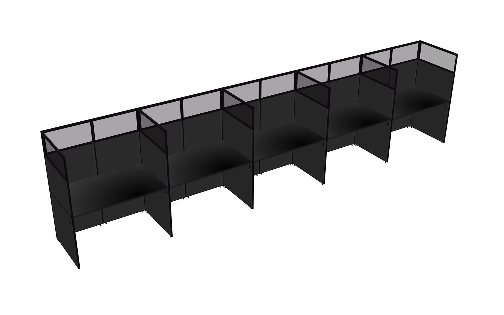 Black Shared Rectangular Office Cubicle Panel System For 5 Persons