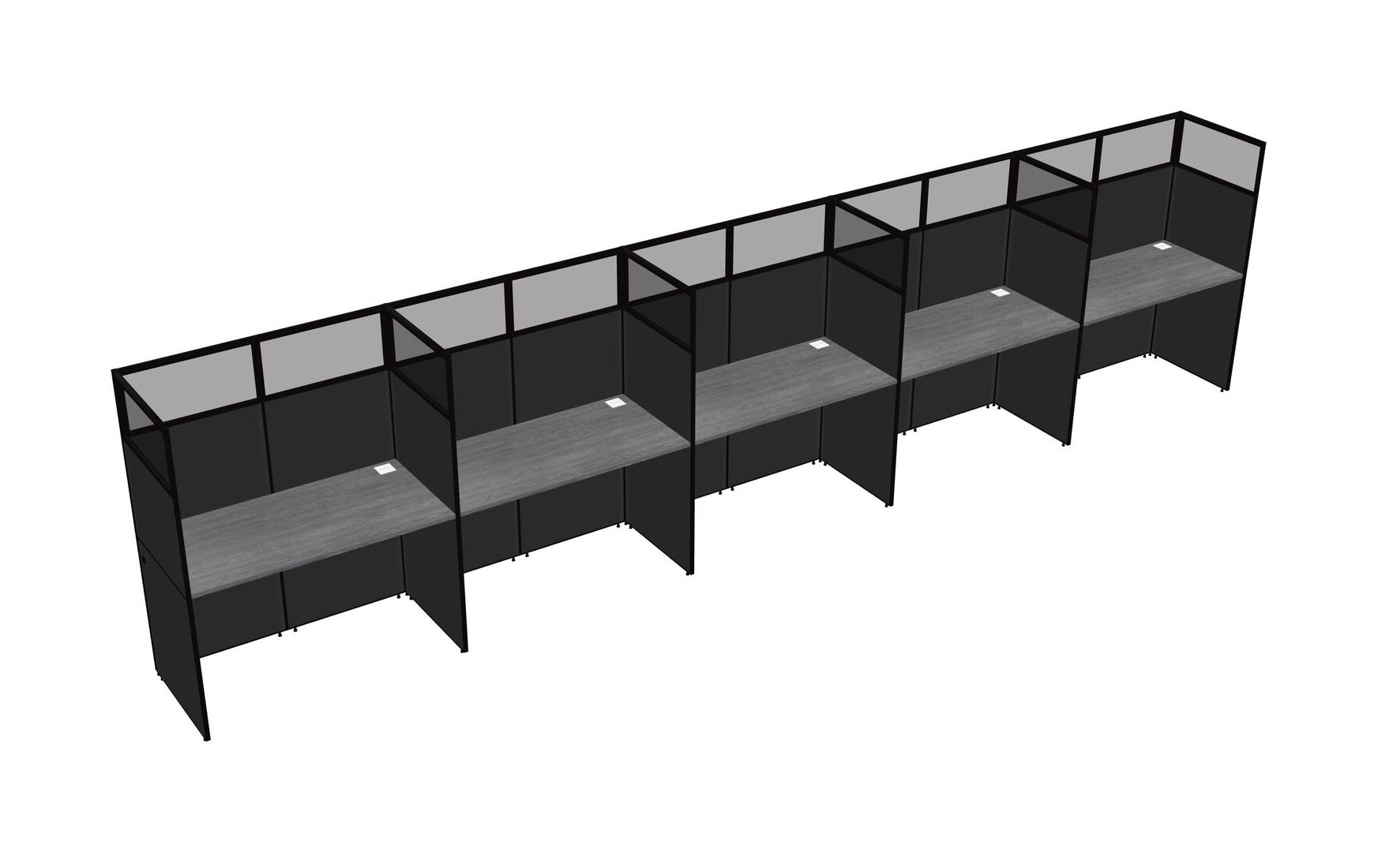 Grey Shared Rectangular Office Cubicle Panel System For 5 Persons