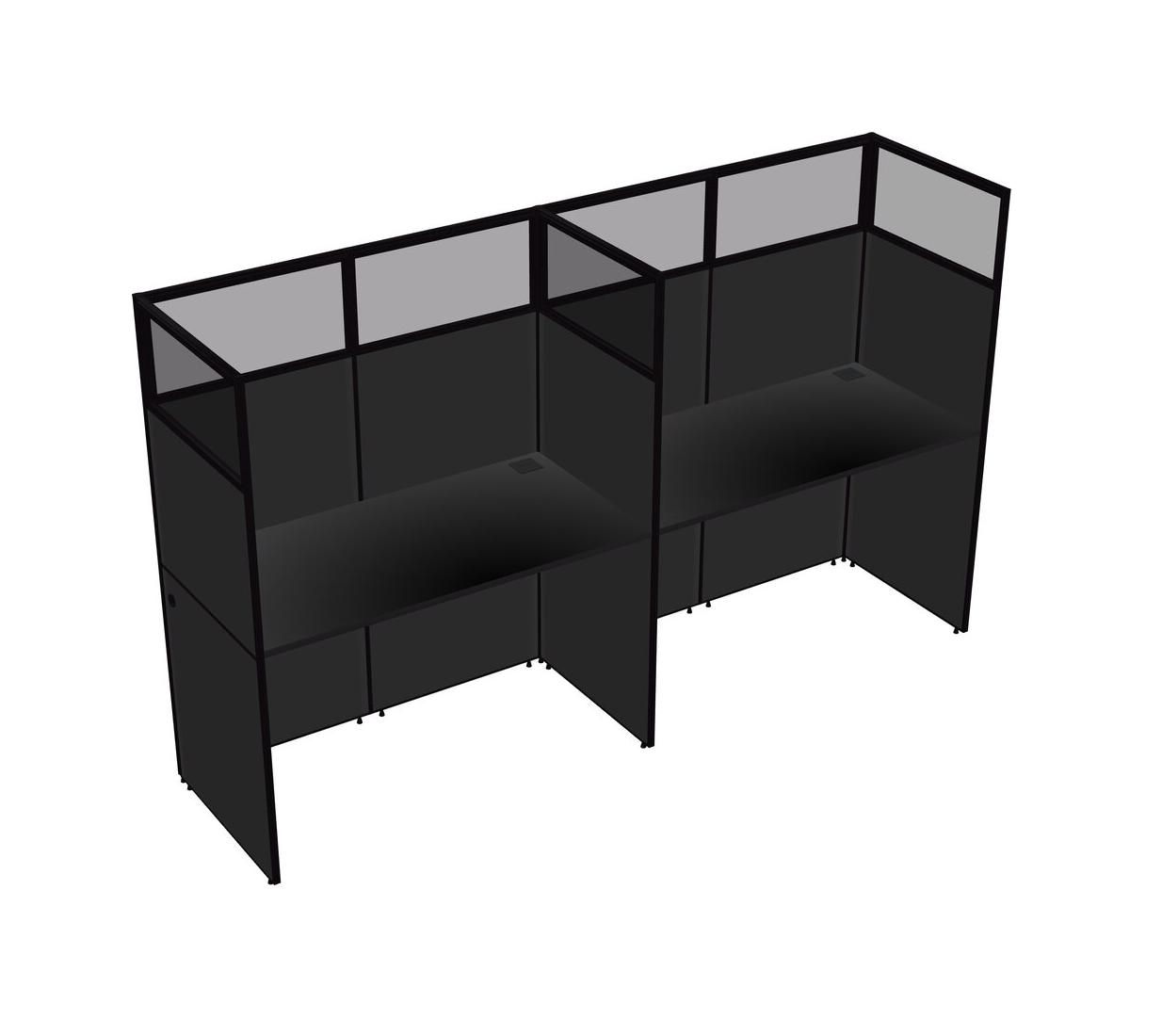 Black Shared Rectangular Office Cubicle Panel System For 2 Persons