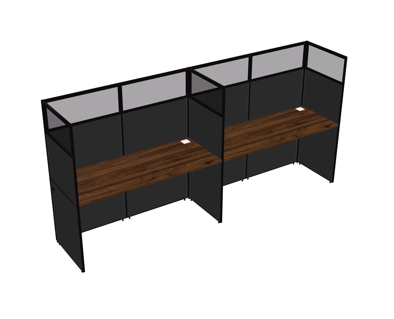 Columbia Walnut Shared Rectangular Office Cubicle Panel System For 2 Persons