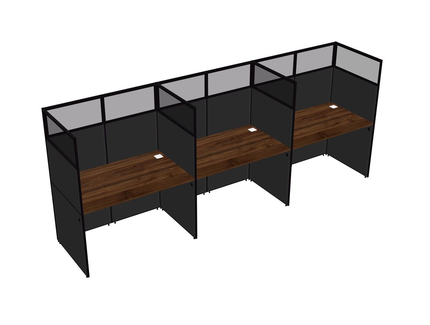 Columbia Walnut Shared Rectangular Office Cubicle Panel System For 3 Persons