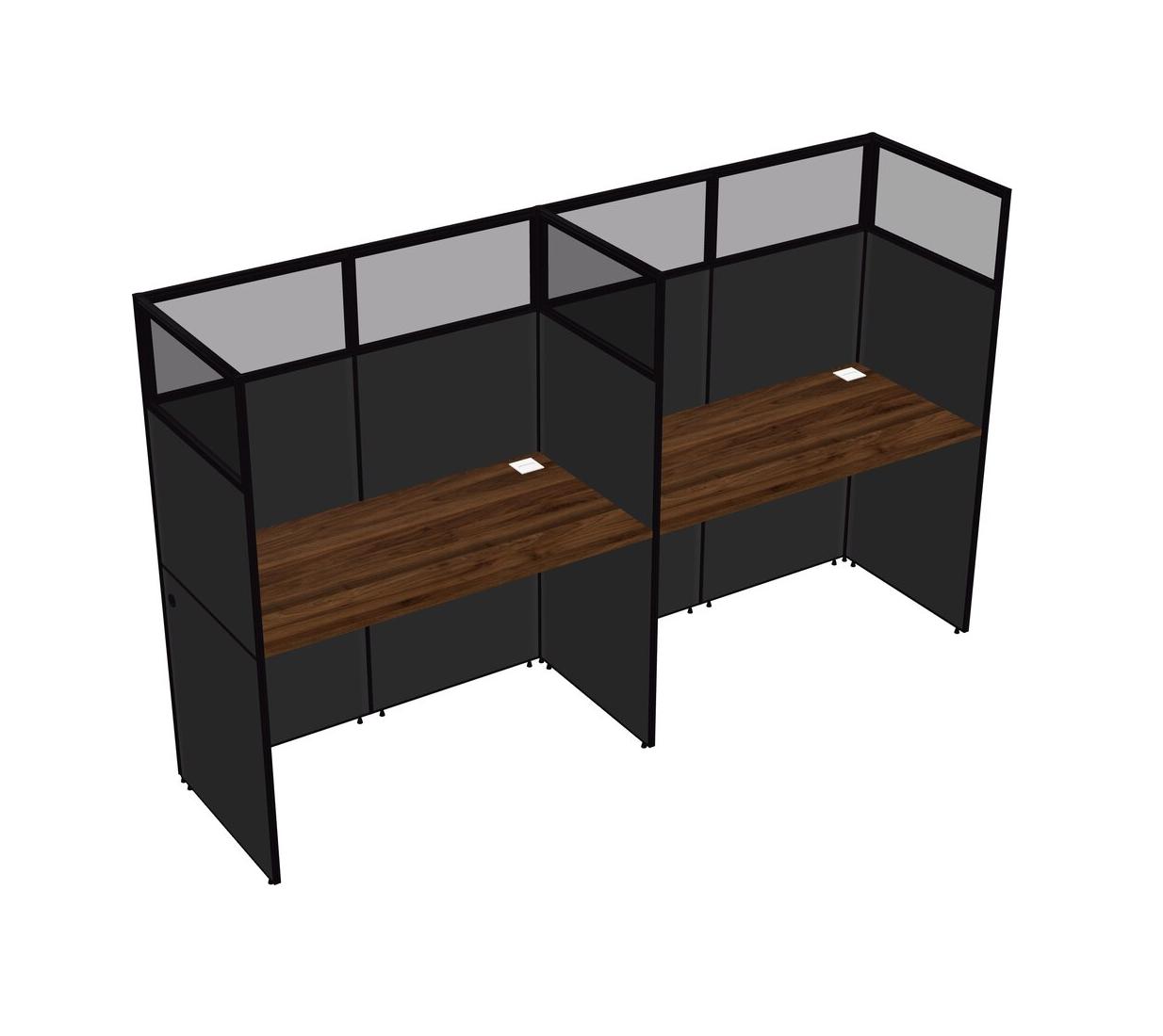 Columbia Walnut Shared Rectangular Office Cubicle Panel System For 2 Persons