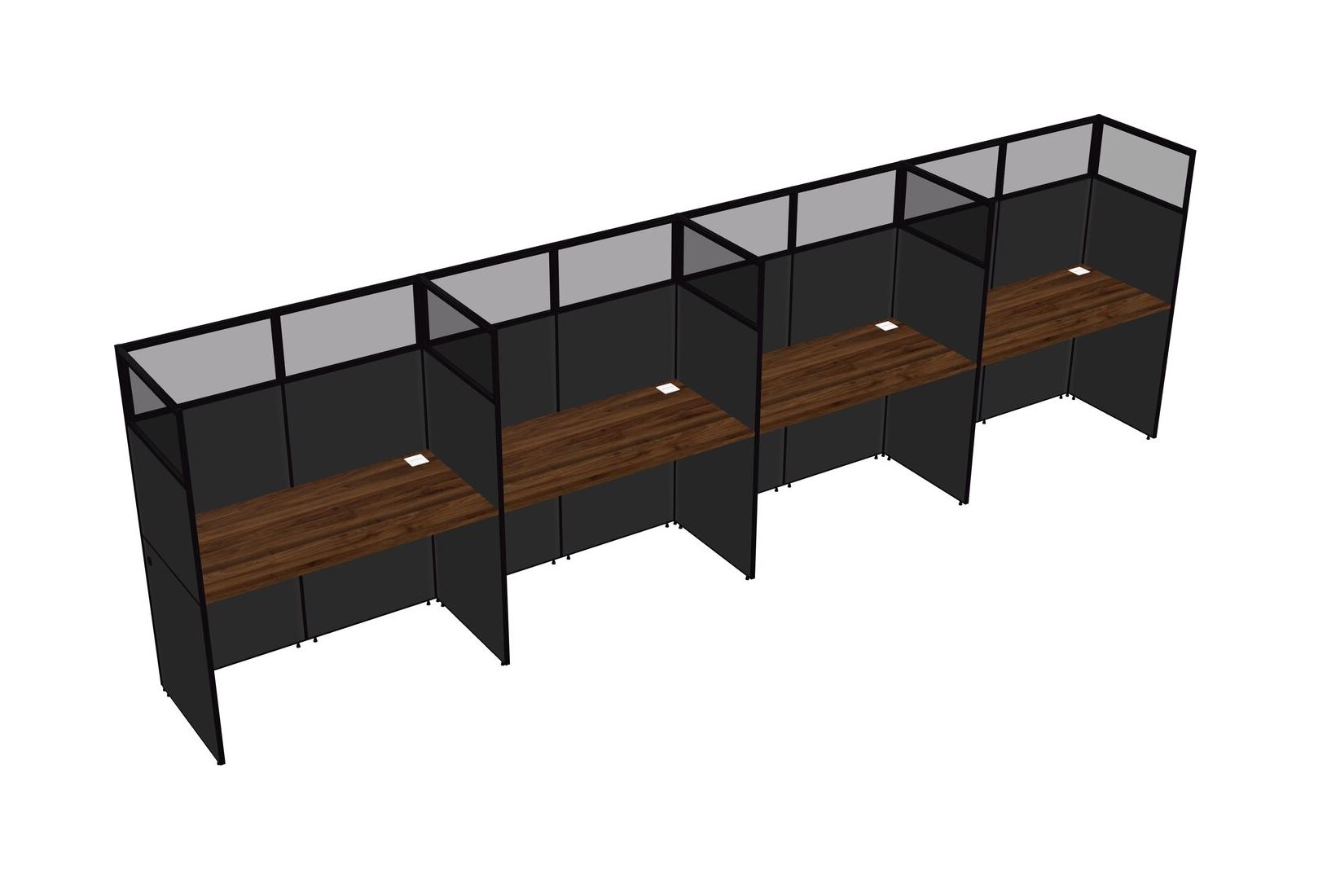 Columbia Walnut Shared Rectangular Office Cubicle Panel System For 4 Persons