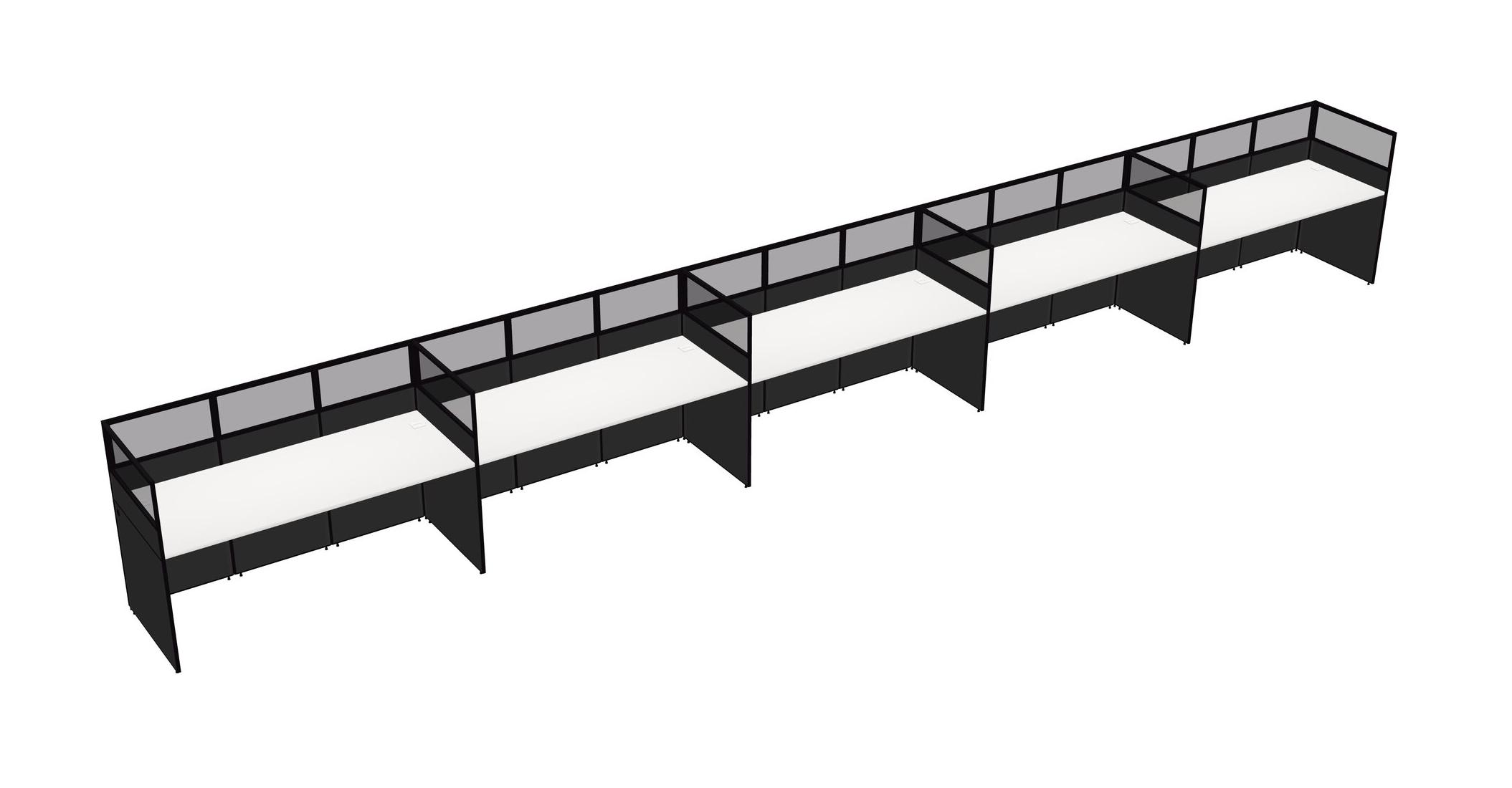 White Shared Rectangular Office Cubicle Panel System For 5 Persons