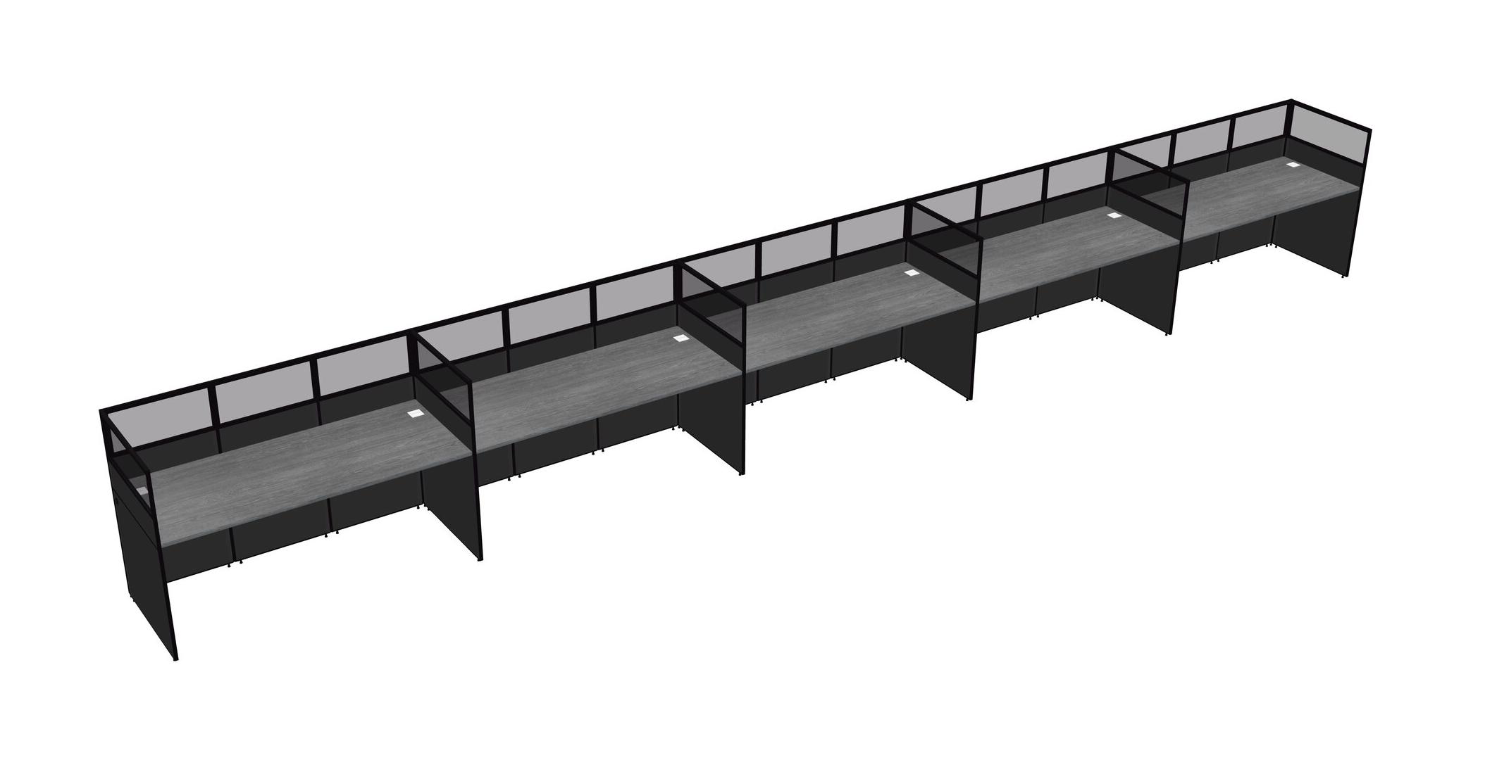 Grey Shared Rectangular Office Cubicle Panel System For 5 Persons