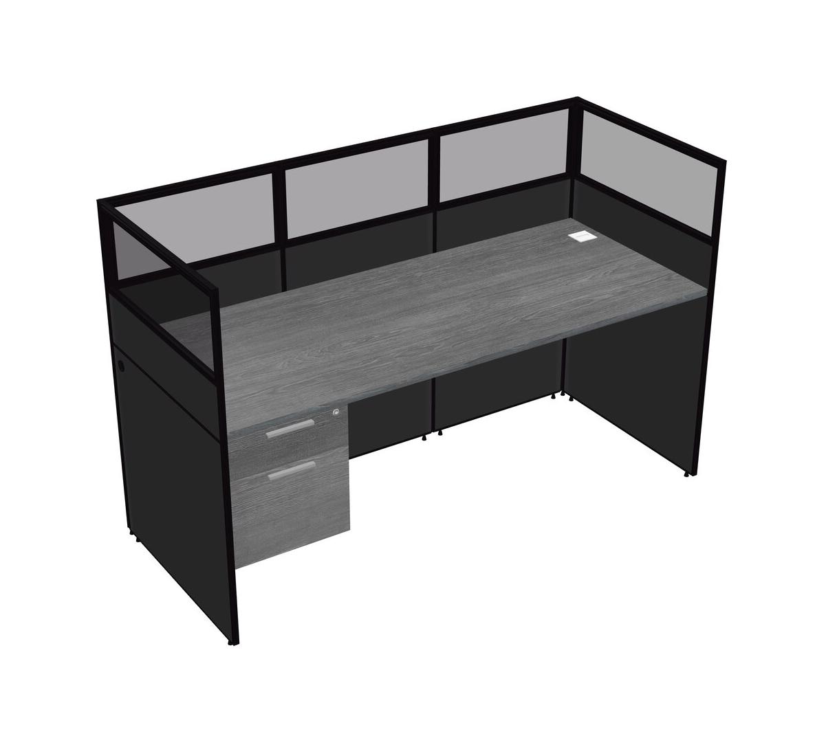 Grey Shared Rectangular Office Cubicle Panel System With Hanging Drawers For 1 Persons