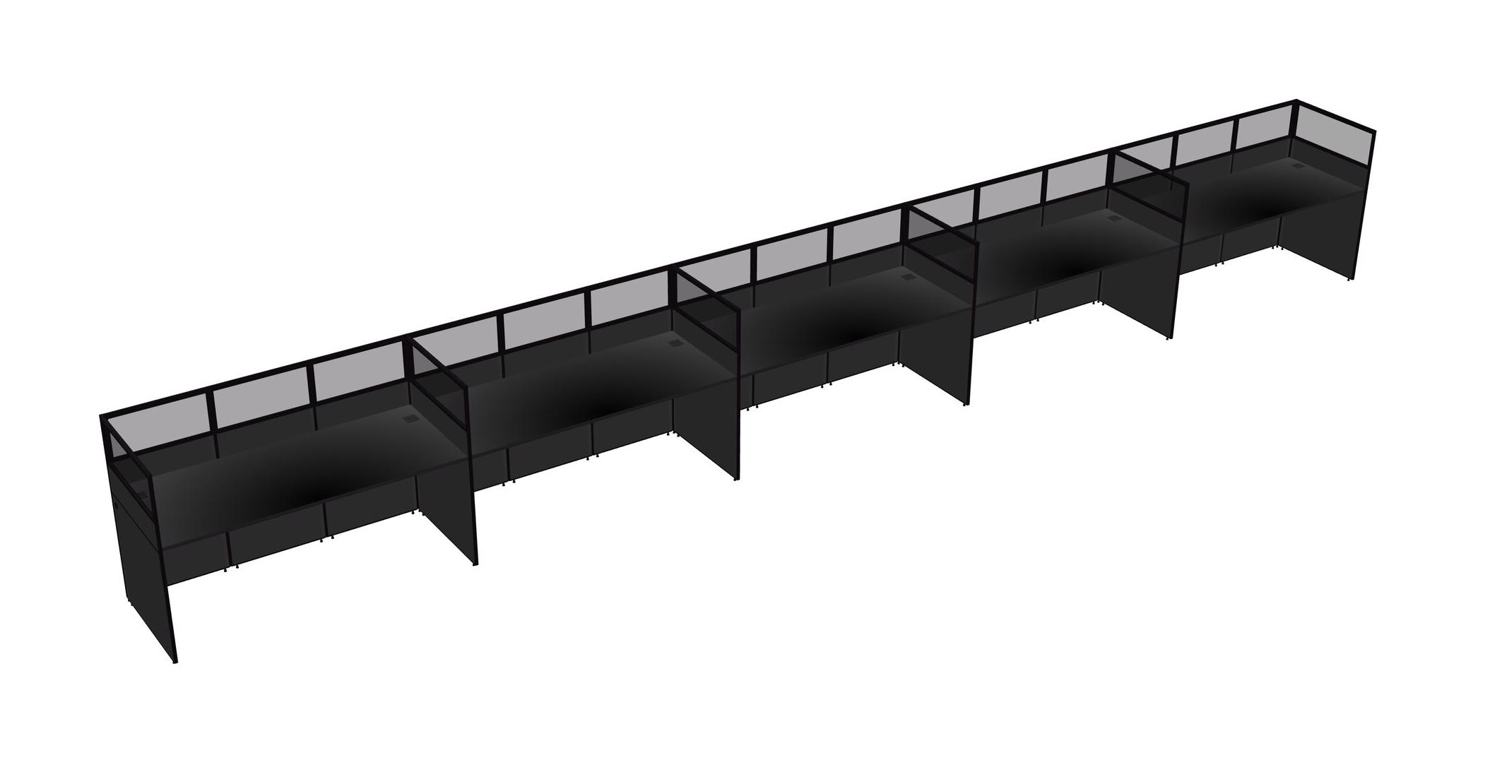Black Shared Rectangular Office Cubicle Panel System For 5 Persons