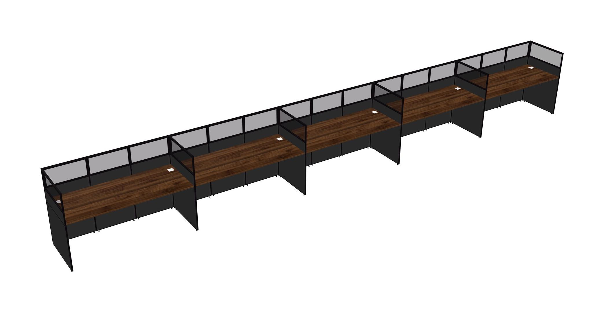 Columbia Walnut Shared Rectangular Office Cubicle Panel System For 5 Persons
