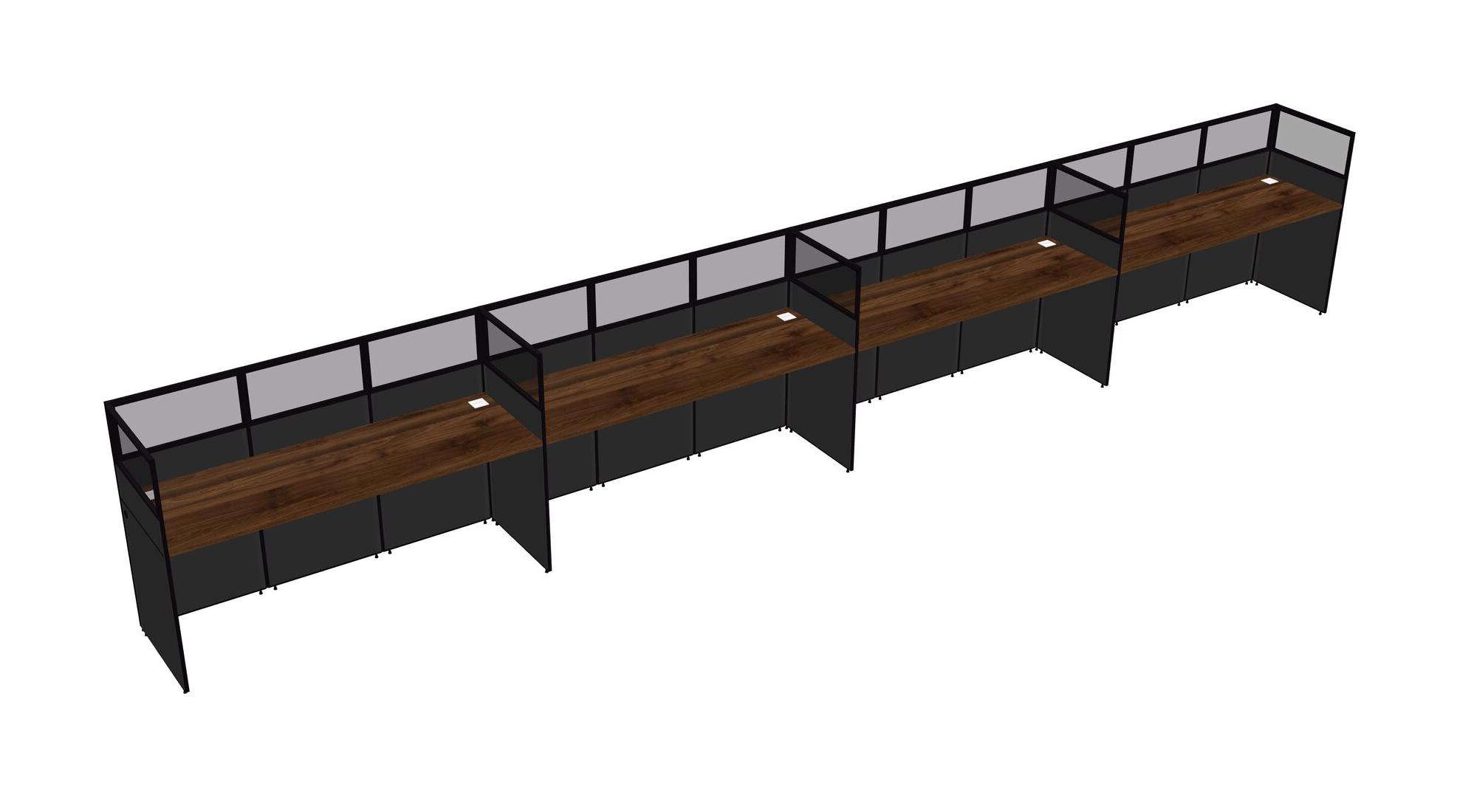 Columbia Walnut Shared Rectangular Office Cubicle Panel System For 4 Persons