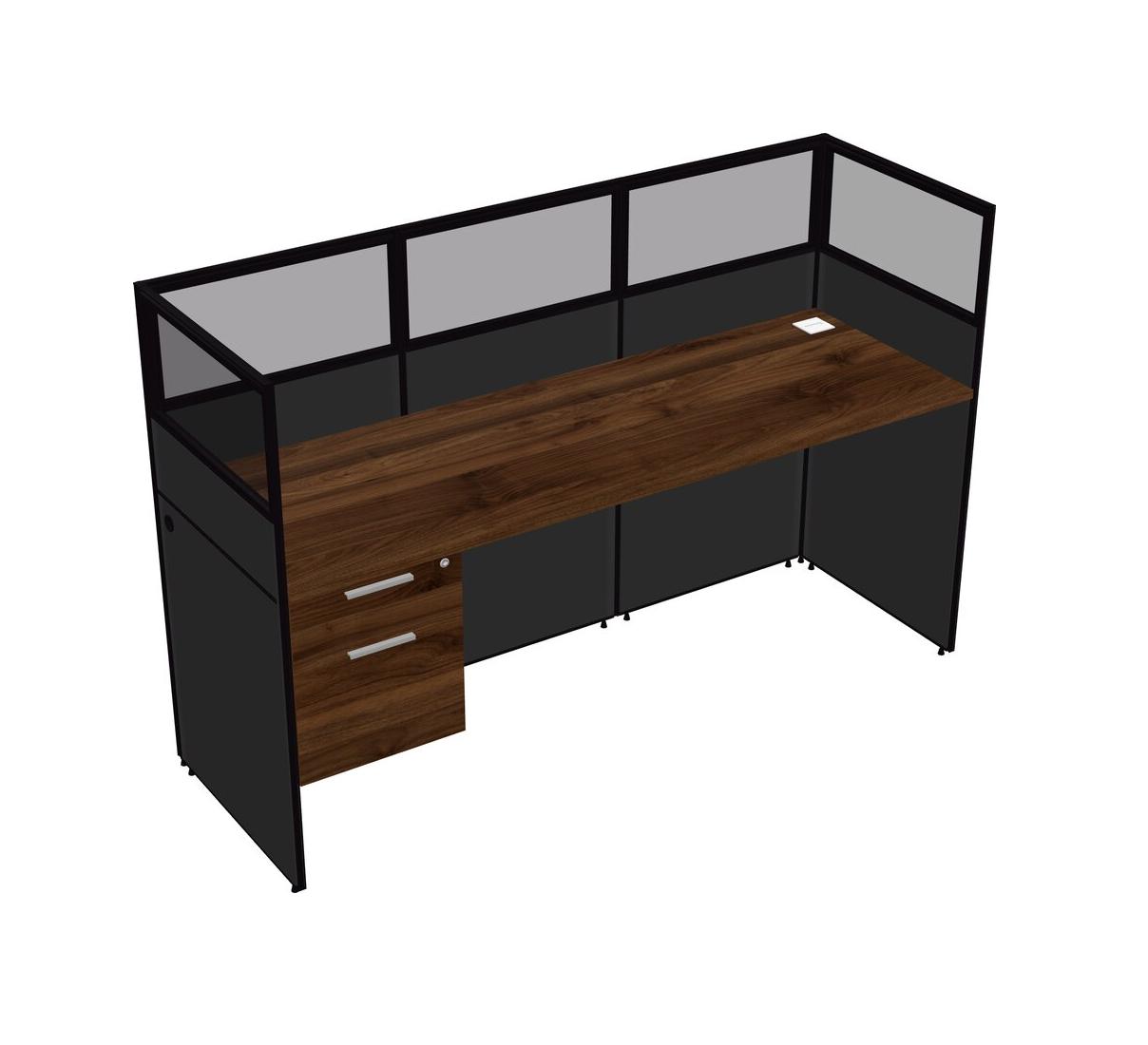 Columbia Walnut Shared Rectangular Office Cubicle Panel System With Hanging Drawers For 1 Persons