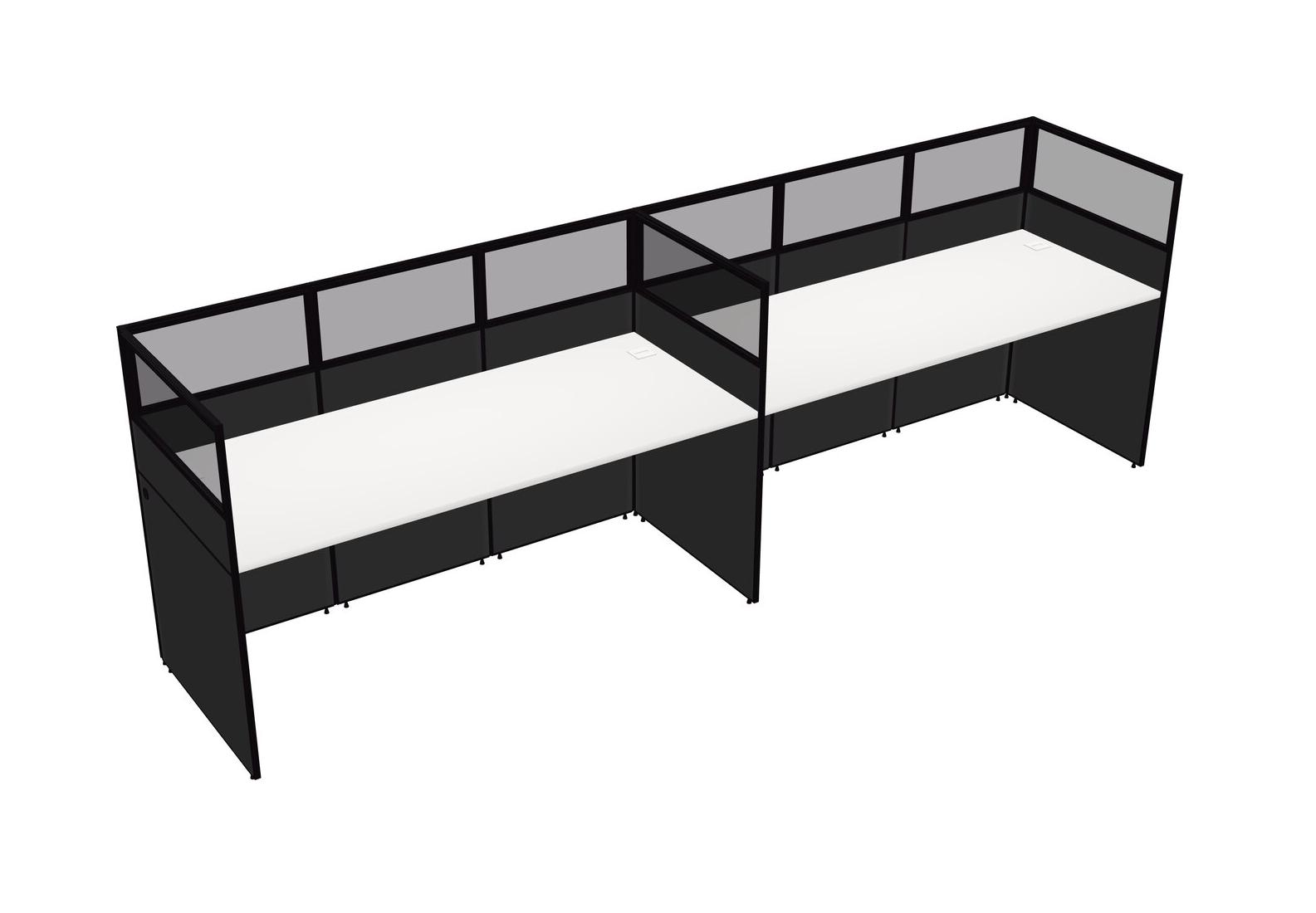 White Shared Rectangular Office Cubicle Panel System For 2 Persons
